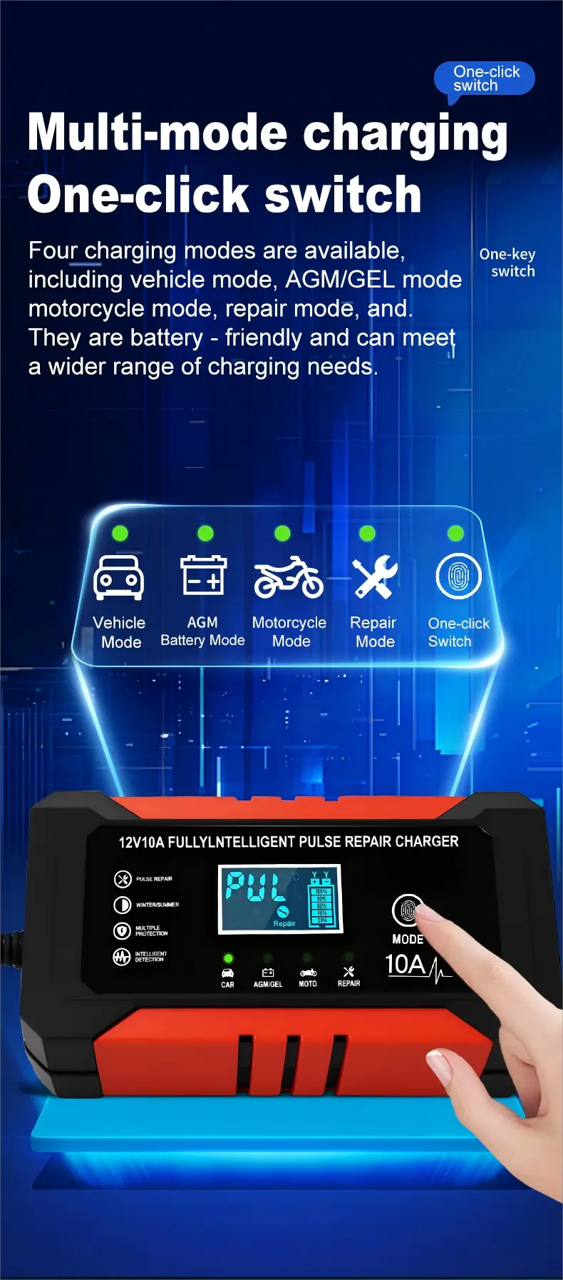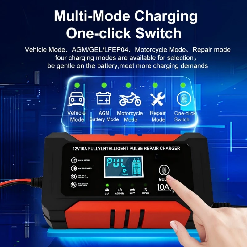 STARWELL దాని 12V 10A మల్టీ-ఫంక్షనల్ ఇంటెలిజెంట్ బ్యాటరీ ఛార్జర్ను సగర్వంగా అందజేస్తుంది, ఇది 12V బ్యాటరీల విస్తృత శ్రేణి కోసం సురక్షితమైన, సమర్థవంతమైన మరియు బహుముఖ ఛార్జింగ్ను అందించడానికి రూపొందించబడిన అధిక-పనితీరు గల స్మార్ట్ ఛార్జింగ్ సొల్యూషన్. ప్రొఫెషనల్ ఇంటెలిజెంట్ బ్యాటరీ ఛార్జర్గా, ఇది నిజ సమయంలో ఛార్జింగ్ ప్రక్రియను పర్యవేక్షించడానికి మరియు సర్దుబాటు చేయడానికి అధునాతన మైక్రోప్రాసెసర్ సాంకేతికతను అనుసంధానిస్తుంది, ఇది ఆటోమోటివ్, మెరైన్, RV మరియు గృహ వినియోగానికి అనువైనదిగా చేస్తుంది, ఇది లెడ్-యాసిడ్, AGM, జెల్ మరియు LiFePO4 బ్యాటరీలకు అనుకూలంగా ఉంటుంది.