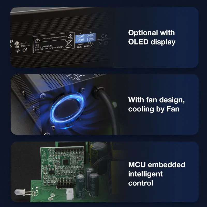 సమర్థవంతమైన విద్యుత్ సరఫరా: 20-50A అవుట్పుట్ కరెంట్కు మద్దతునిస్తూ, 12V నుండి 72V పరిధిలో స్థిరమైన శక్తిని అందిస్తుంది.