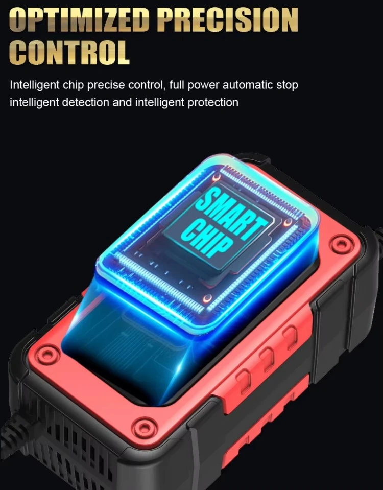 పూర్తి ఇంటెలిజెంట్ ఛార్జింగ్: మైక్రోప్రాసెసర్-నియంత్రిత, బహుళ-దశల ఛార్జింగ్ (ట్రికిల్, స్థిరమైన కరెంట్, స్థిరమైన వోల్టేజ్, ఫ్లోట్ మరియు పల్స్) అధిక ఛార్జింగ్ లేకుండా సురక్షితమైన మరియు సమర్థవంతమైన ఛార్జింగ్ను నిర్ధారిస్తుంది.