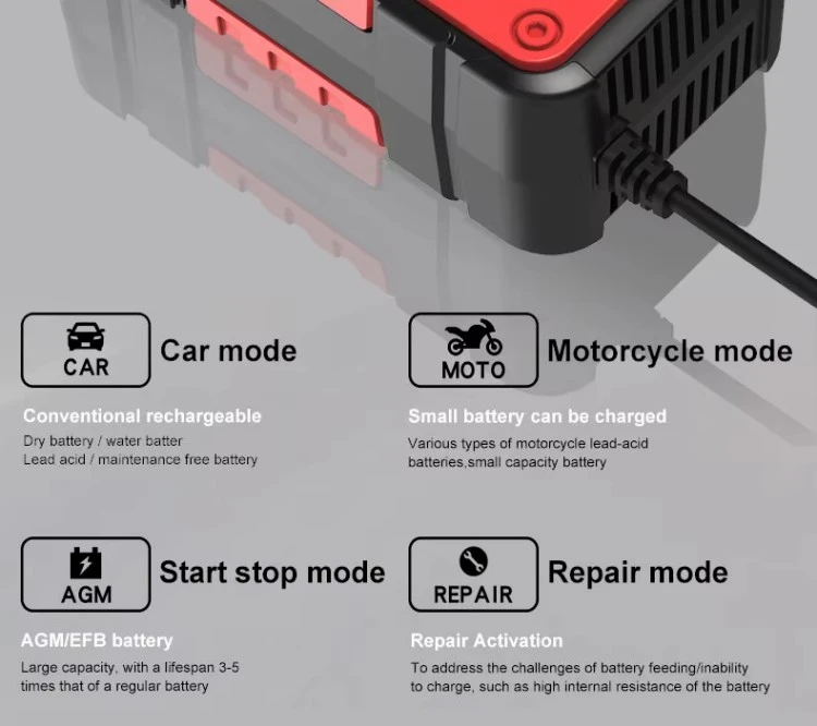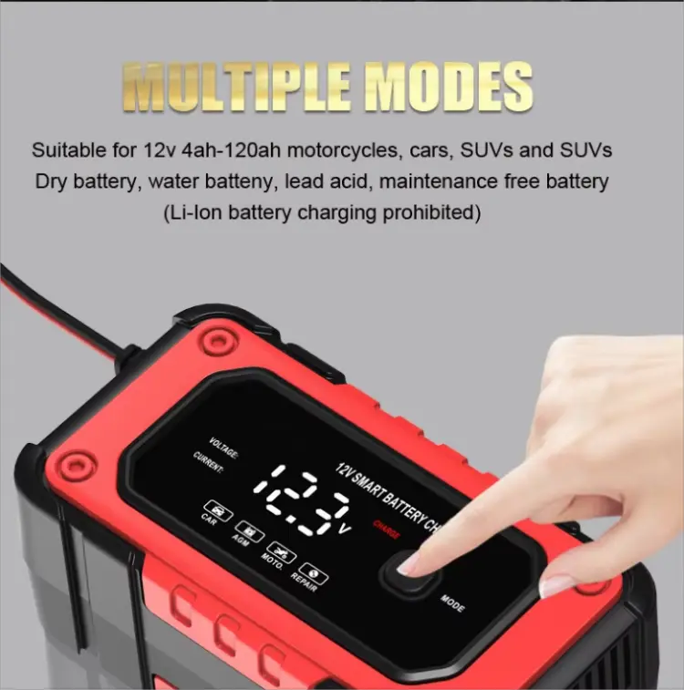 రిపేర్ మోడ్: అంతర్నిర్మిత పల్స్ రిపేర్ ఫంక్షన్ సల్ఫేట్ బ్యాటరీలను తిరిగి పొందడంలో మరియు బ్యాటరీ జీవితాన్ని పొడిగించడంలో సహాయపడుతుంది.