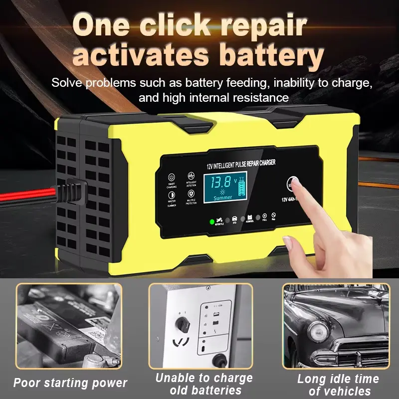 బ్యాటరీ ప్లేట్లపై లెడ్ సల్ఫేట్ స్ఫటికాలను విచ్ఛిన్నం చేయడానికి పల్స్ కరెంట్ని ఉపయోగిస్తుంది, వృద్ధాప్య బ్యాటరీలలో సామర్థ్యాన్ని పునరుద్ధరించడంలో సహాయపడుతుంది. |