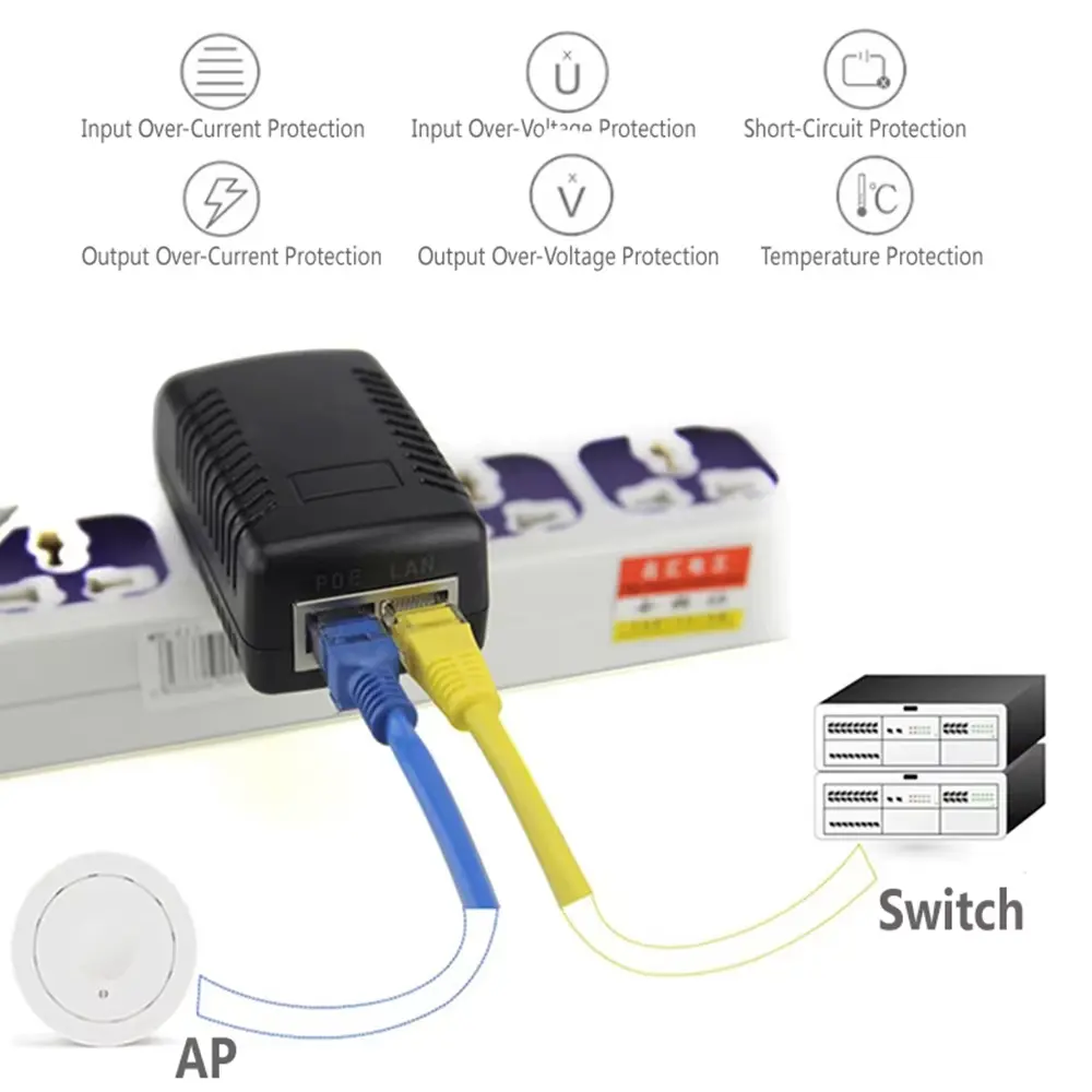 వాల్-మౌంటెడ్ ఇన్స్టాలేషన్ స్థలాన్ని ఆదా చేసే కార్యాలయాలు, హోటళ్లు మరియు ఇళ్లలో వైర్లెస్ యాక్సెస్ పాయింట్లను (APలు) పవర్ చేయడానికి పర్ఫెక్ట్.