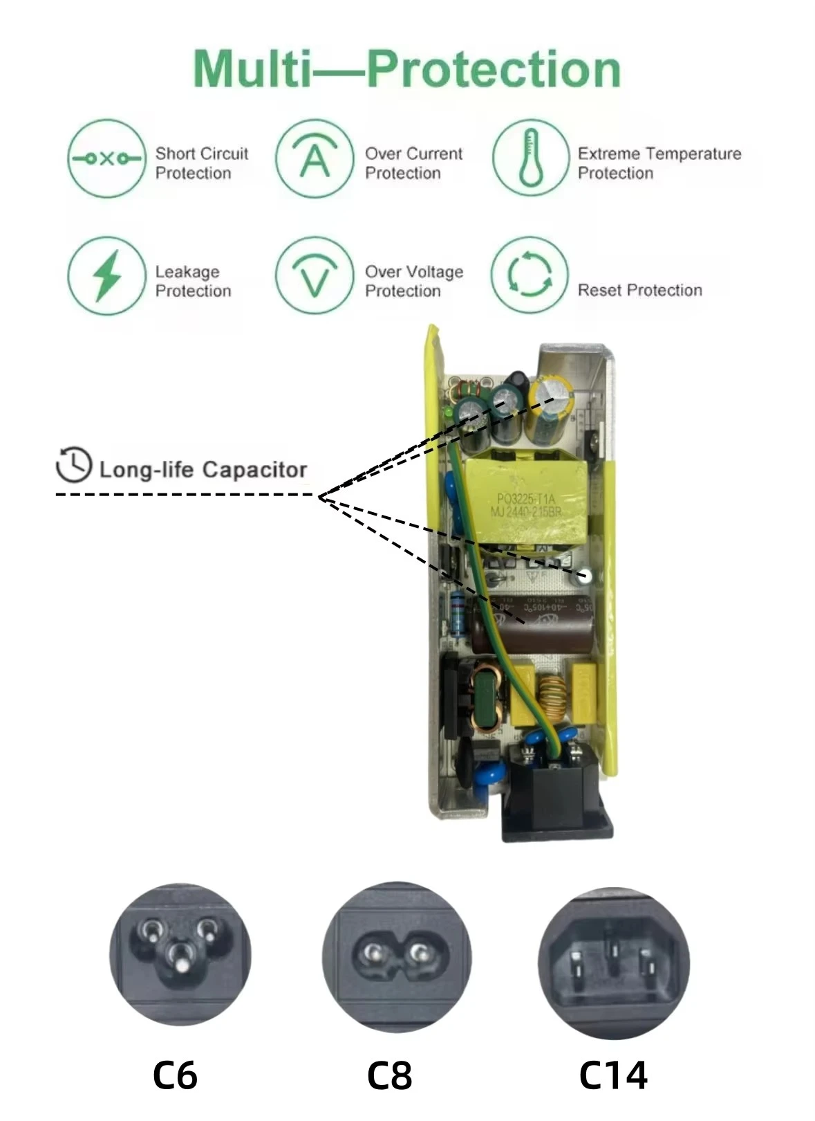 ప్రపంచవ్యాప్త ఇన్పుట్ వోల్టేజ్: 100-240V AC ఇన్పుట్ పరిధి వాస్తవంగా ఏ దేశంలోనైనా సురక్షితమైన ఉపయోగం కోసం అనుమతిస్తుంది.