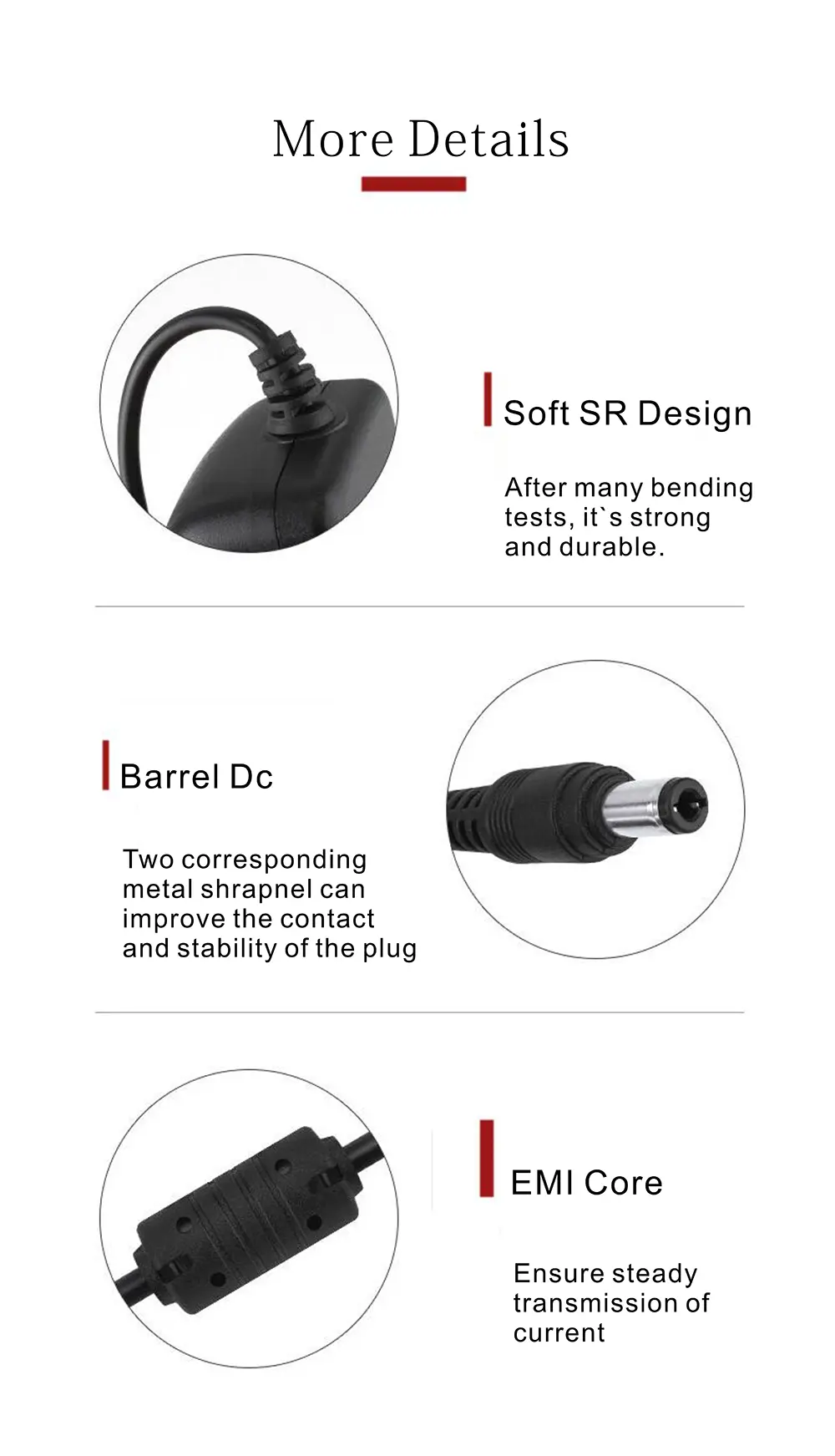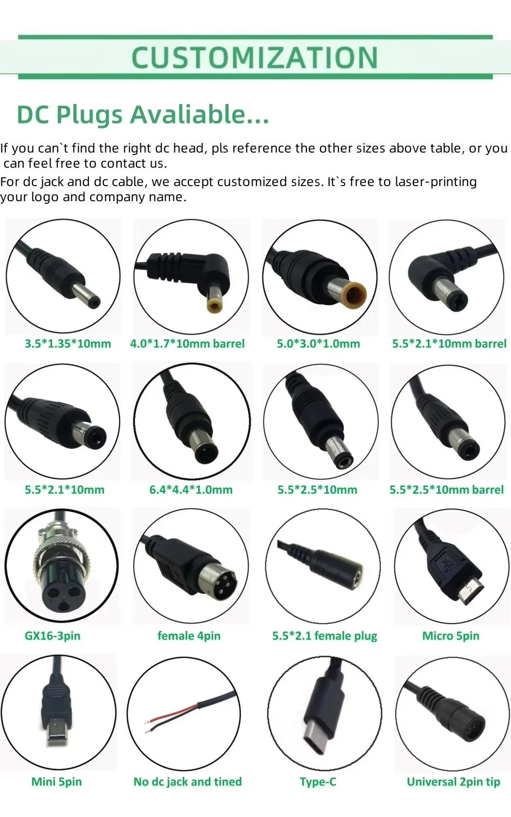 3. కనెక్టర్ ఫిట్: ప్లగ్ పరిమాణం (ఉదా., 5.5 మి.మీ x 2.1 మి.మీ) మరియు ధ్రువణత (తరచుగా మధ్య-పాజిటివ్) మీ పరికరం యొక్క DC జాక్తో సరిపోలుతున్నట్లు నిర్ధారించండి. అసమతుల్యత నష్టం కలిగించవచ్చు.