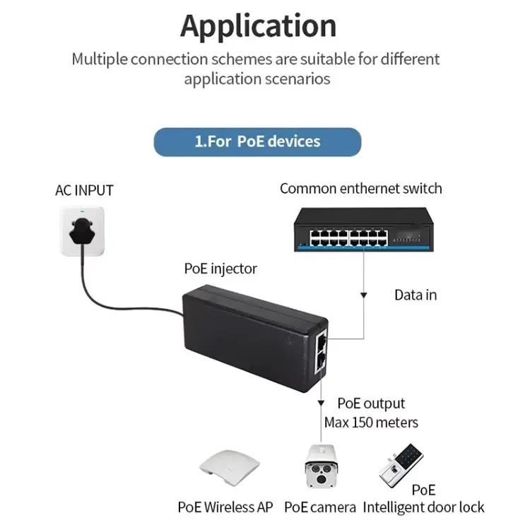 ఈ 24V 1A గిగాబిట్ పాసివ్ POE ఇంజెక్టర్ ఇందులో విస్తృతంగా ఉపయోగించబడుతుంది: