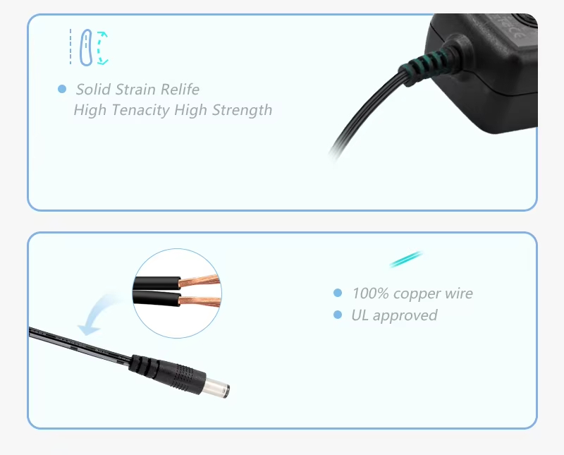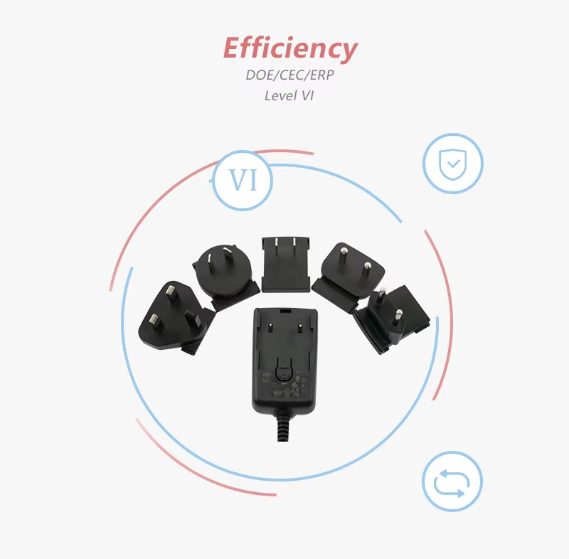 సమర్థవంతమైన మరియు స్థిరమైన విద్యుత్ సరఫరా: అధిక-పనితీరు గల 24W పవర్ అడాప్టర్గా, సమర్థవంతమైన మార్పిడిని సాధించడానికి ఇది అధునాతన స్విచింగ్ మార్చుకోగలిగిన ప్లగ్ విద్యుత్ సరఫరా సాంకేతికతను స్వీకరించింది. ఇది ఆల్టర్నేటింగ్ కరెంట్ను డైరెక్ట్ కరెంట్గా మార్చగలదు (AC నుండి DC మార్చుకోగలిగిన ప్లగ్ పవర్ అడాప్టర్), మీ పరికరాలకు నిరంతర మరియు స్వచ్ఛమైన శక్తిని అందిస్తుంది.