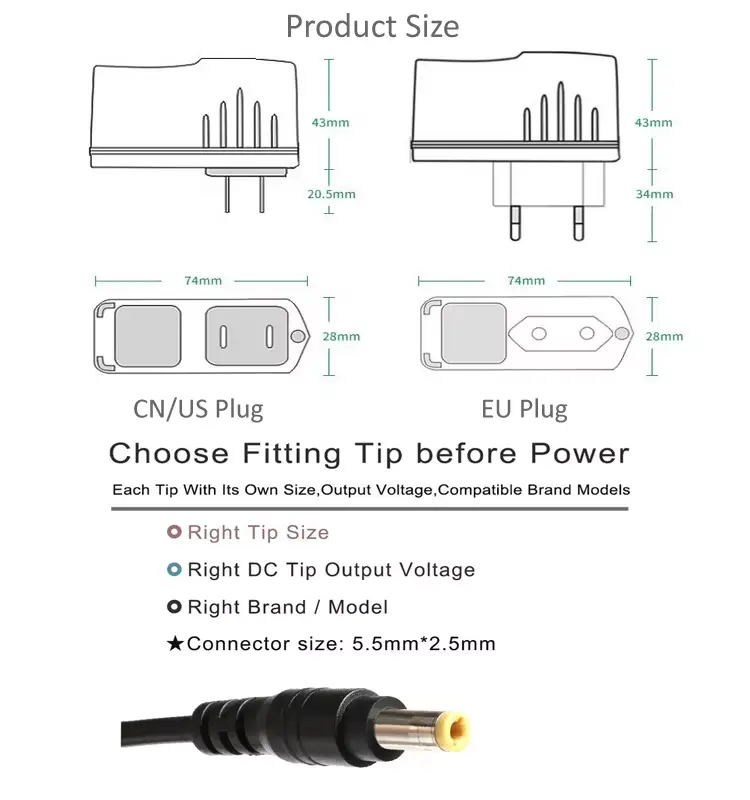 AC ప్లగ్: US/EU/AU/UK/CN/JP ప్లగ్లు మార్చుకోగలిగినవి