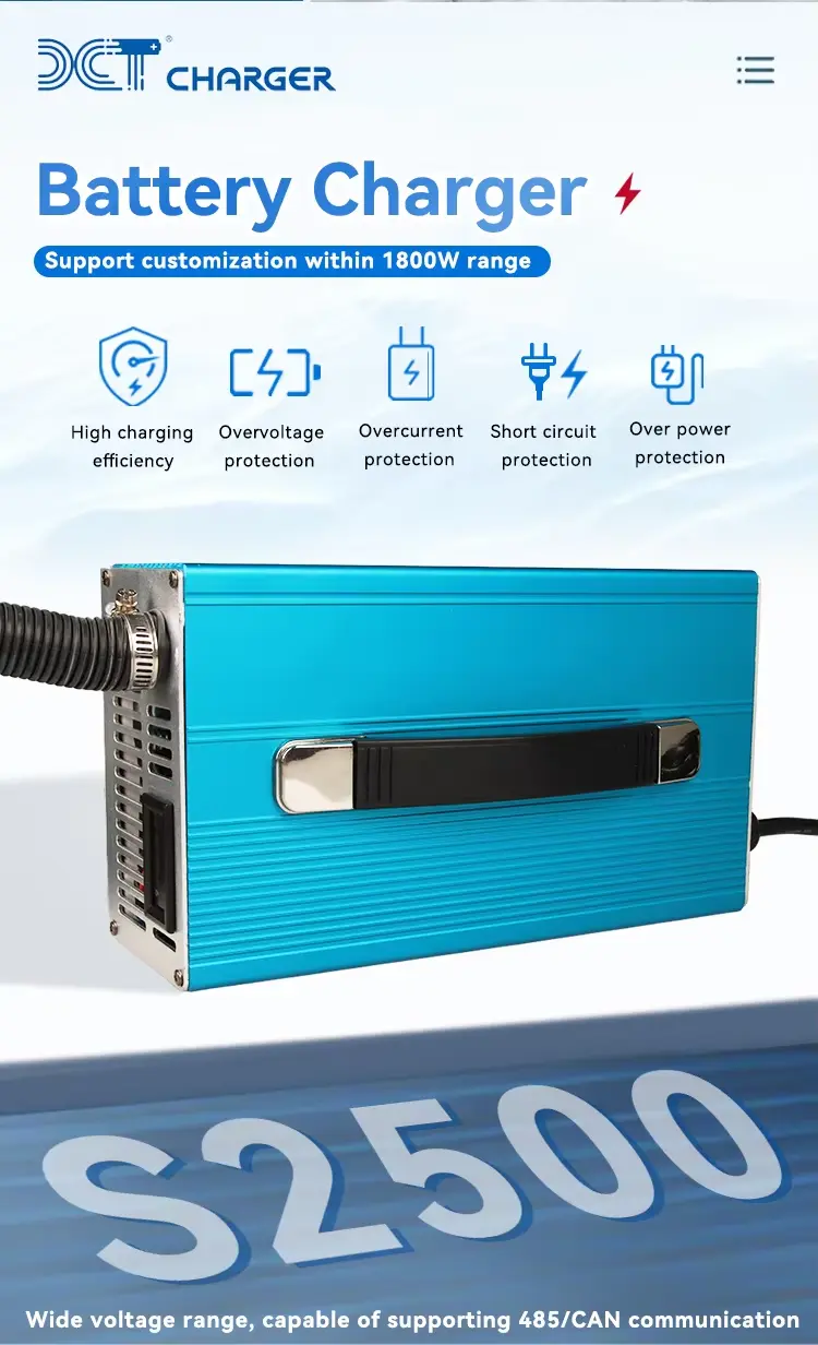 కఠినమైన, కాంపాక్ట్ నిర్మాణం మరియు మంచి వేడి వెదజల్లడంతో, ఇది ఎలక్ట్రిక్ వాహనాలు, పారిశ్రామిక శుభ్రపరిచే యంత్రాలు, శక్తి నిల్వ వ్యవస్థలు, AGVలు మరియు సముద్ర పరికరాలకు అనుకూలంగా ఉంటుంది. ఇది అంతర్జాతీయ భద్రతా ధృవపత్రాలకు అనుగుణంగా ఉంటుంది మరియు అనుకూలీకరించిన కనెక్టర్లు మరియు లేబులింగ్కు మద్దతు ఇస్తుంది. అధిక సామర్థ్యం, స్థిరత్వం మరియు మన్నికను కలిపి, ఈ ఛార్జర్ మీడియం-టు-లార్జ్ కెపాసిటీ 24V బ్యాటరీ సిస్టమ్లకు అనువైన ఎంపిక.