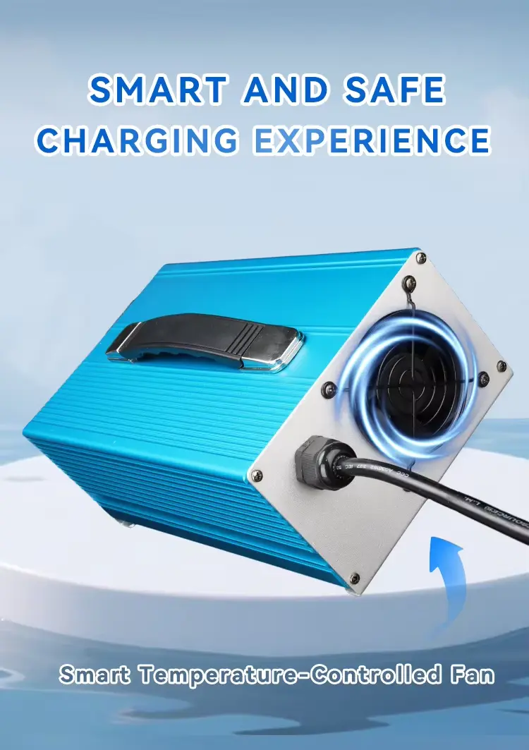 ఇది తెలివైన నాలుగు-దశల ఛార్జింగ్ లాజిక్ను ఉపయోగిస్తుంది: ప్రీ-ఛార్జ్, స్థిరమైన కరెంట్, స్థిరమైన వోల్టేజ్ మరియు ఫ్లోట్ ఛార్జ్, ఇది పూర్తి ఛార్జింగ్ను నిర్ధారించేటప్పుడు బ్యాటరీ జీవితాన్ని సమర్థవంతంగా పొడిగిస్తుంది. అంతర్నిర్మిత పూర్తి రక్షణ యంత్రాంగాలలో ఓవర్-వోల్టేజ్, ఓవర్-కరెంట్, ఓవర్-టెంపరేచర్, షార్ట్-సర్క్యూట్ మరియు రివర్స్-పోలారిటీ ప్రొటెక్షన్, కార్యాచరణ భద్రత మరియు విశ్వసనీయతను మెరుగుపరుస్తుంది. ఛార్జర్ పూర్తి ఛార్జ్పై ఆటోమేటిక్ పవర్-ఆఫ్కు మద్దతు ఇస్తుంది, వినియోగదారులను మాన్యువల్ పర్యవేక్షణ నుండి విముక్తి చేస్తుంది.