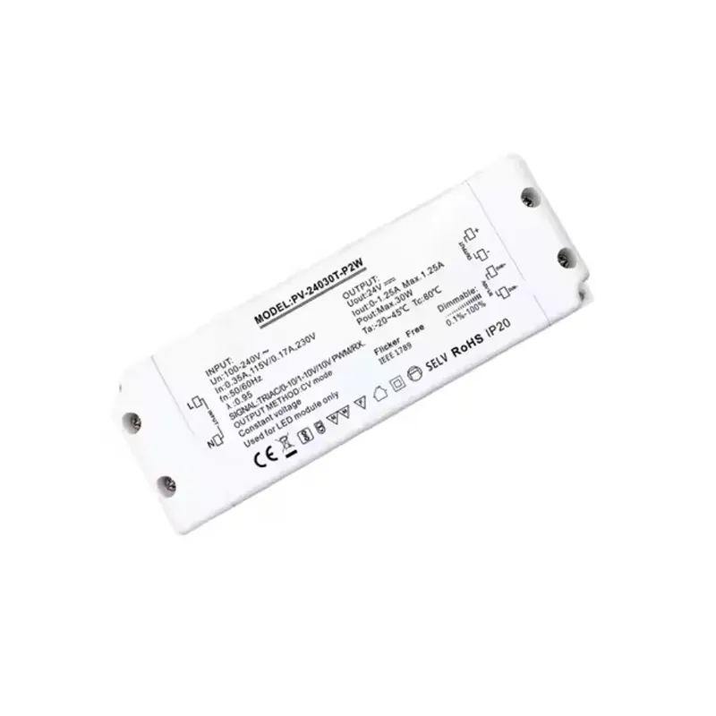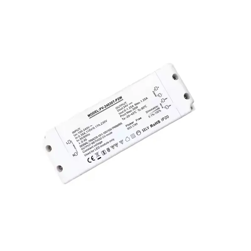 అధిక నాణ్యత గల 30W స్థిరమైన వోల్టేజ్ ట్రయాక్ డిమ్మింగ్ లీడ్ డ్రైవర్ ని చైనా తయారీదారు స్టార్వెల్ అందిస్తున్నారు, ఇది అధిక-పనితీరు, బహుళ ప్రయోజన 30W స్థిరమైన వోల్టేజ్ ట్రైయాక్ డిమ్మింగ్ LED డ్రైవర్, ఇది ఖచ్చితమైన కాంతి నియంత్రణ అవసరమయ్యే LED లైటింగ్ సిస్టమ్ల కోసం ప్రత్యేకంగా రూపొందించబడింది. ఇది సాంప్రదాయ లీడింగ్-ఎడ్జ్ ఫేజ్-కట్ (ట్రియాక్) డిమ్మింగ్ మరియు అధునాతన 0-10V అనలాగ్ డిమ్మింగ్ ప్రోటోకాల్లు రెండింటికీ అనుకూలంగా ఉంటుంది, ఇది 30W ట్రయాక్ 0-10V డిమ్మబుల్ LED డ్రైవర్గా పనిచేస్తుంది, వినియోగదారులకు ఇన్స్టాలేషన్ సౌలభ్యం మరియు దృశ్య అనుకూలతను అందిస్తుంది.