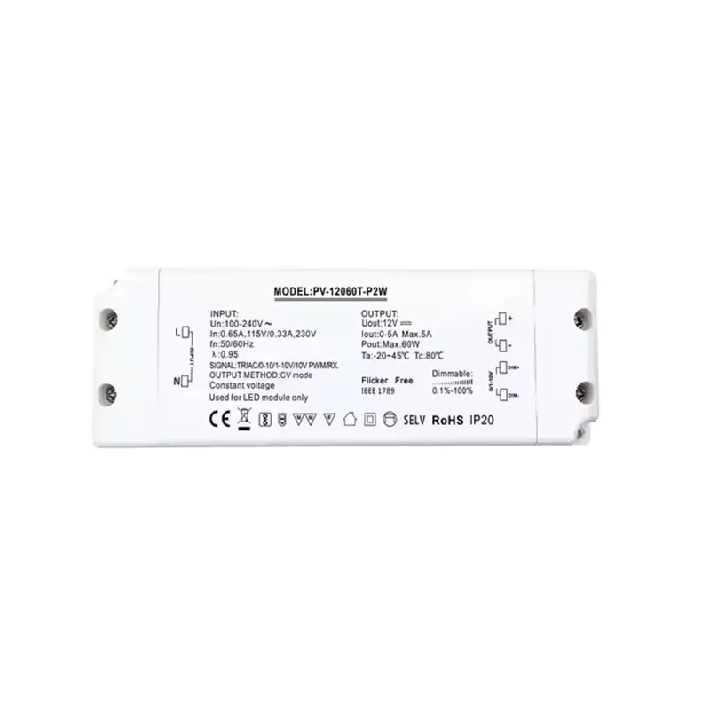 స్థిరమైన స్థిరమైన వోల్టేజ్ పవర్ సప్లై ట్రైయాక్ డిమ్మింగ్ లీడ్ డ్రైవర్గా, ఇది స్థిరమైన 12V DC వోల్టేజ్ అవుట్పుట్ను అందిస్తుంది. ఈ 12V 30W ట్రయాక్ మసకబారిన విద్యుత్ సరఫరా అధిక-నాణ్యత భాగాలు మరియు అధునాతన సర్క్యూట్ డిజైన్ను స్వీకరిస్తుంది, పూర్తి మసకబారిన శ్రేణిలో స్థిరమైన అవుట్పుట్ వోల్టేజ్ని నిర్ధారిస్తుంది మరియు ప్రాథమికంగా లైట్ల మినుకుమినుకుమనేదాన్ని తొలగిస్తుంది. ఇది ఇండోర్ ఉపయోగం కోసం నిజంగా ఫ్లికర్-ఫ్రీ ట్రైయాక్ డిమ్మింగ్ లీడ్ డ్రైవర్. దీని నాన్-ఫ్లికరింగ్ ఫీచర్ సౌకర్యవంతమైన మరియు ఆరోగ్యకరమైన దృశ్యమాన వాతావరణాన్ని సృష్టించడమే కాకుండా సున్నితమైన LED లైట్ సోర్సెస్ మరియు మాడ్యూల్లను సమర్థవంతంగా రక్షిస్తుంది, లైటింగ్ ఫిక్చర్ల మొత్తం జీవితకాలం పొడిగిస్తుంది.
