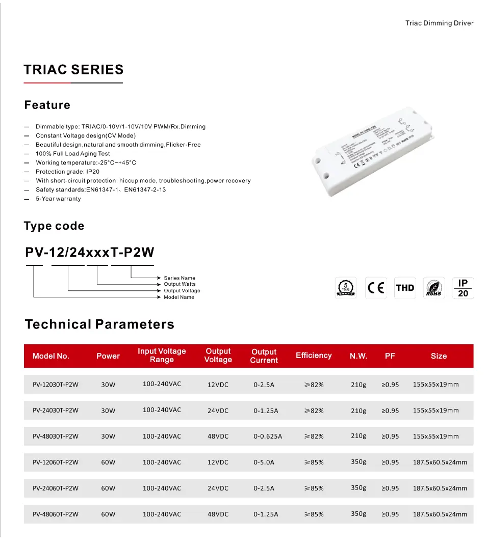 TRIAC 0-10V డిమ్మబుల్ 30W స్థిరమైన వోల్టేజ్ విద్యుత్ సరఫరా, స్టార్వెల్ దీర్ఘకాలిక నాణ్యత హామీ కోసం 5 సంవత్సరాల వారంటీని అందిస్తుంది. దీని ప్రధాన భాగాలు అన్ని పారిశ్రామిక ప్రమాణాలకు అనుగుణంగా తయారు చేయబడ్డాయి, అద్భుతమైన ఉప్పెన నిరోధకత, అధిక-ఉష్ణోగ్రత ఓర్పు మరియు దీర్ఘకాలిక కార్యాచరణ విశ్వసనీయతను కలిగి ఉంటాయి. ఈ 30W స్థిరమైన వోల్టేజ్ TRIAC మసకబారడం LED డ్రైవర్, ఇది డ్యూయల్-మోడ్ డిమ్మింగ్, స్థిరమైన వోల్టేజ్ అవుట్పుట్, ఫ్లికర్-ఫ్రీ టెక్నాలజీ మరియు సుదీర్ఘ జీవితకాలం, అధిక-నాణ్యత లైటింగ్ ప్రభావాలను కోరుకునే వారికి అద్భుతమైన ఎంపిక. విచారణకు స్వాగతం.