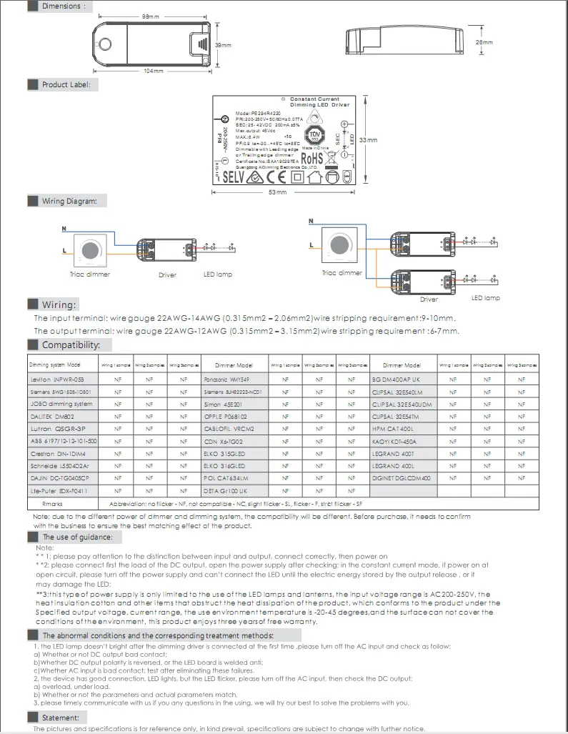 అధిక నాణ్యత గల PE294R 42V max 200ma స్థిరమైన కరెంట్ ట్రయాక్ డిమ్మింగ్ లీడ్ డ్రైవర్ అధిక శక్తి కారకం, అధిక సామర్థ్యం, అధిక ఖచ్చితత్వం, సమర్థవంతమైన స్టోబుల్ తక్కువ లాస్ స్విచ్ కంట్రోల్ చిప్ని ఉపయోగించడం, అధిక పనితీరుతో కూడిన తక్కువ నొప్పుల స్విచ్ నియంత్రణ చిప్ని ఉపయోగించడం ద్వారా చైనా తయారీదారు స్టార్వెల్ అభివృద్ధి చేసిన స్థిరమైన కరెంట్ డిమ్మింగ్ LED డైవర్లో ఒకటి.