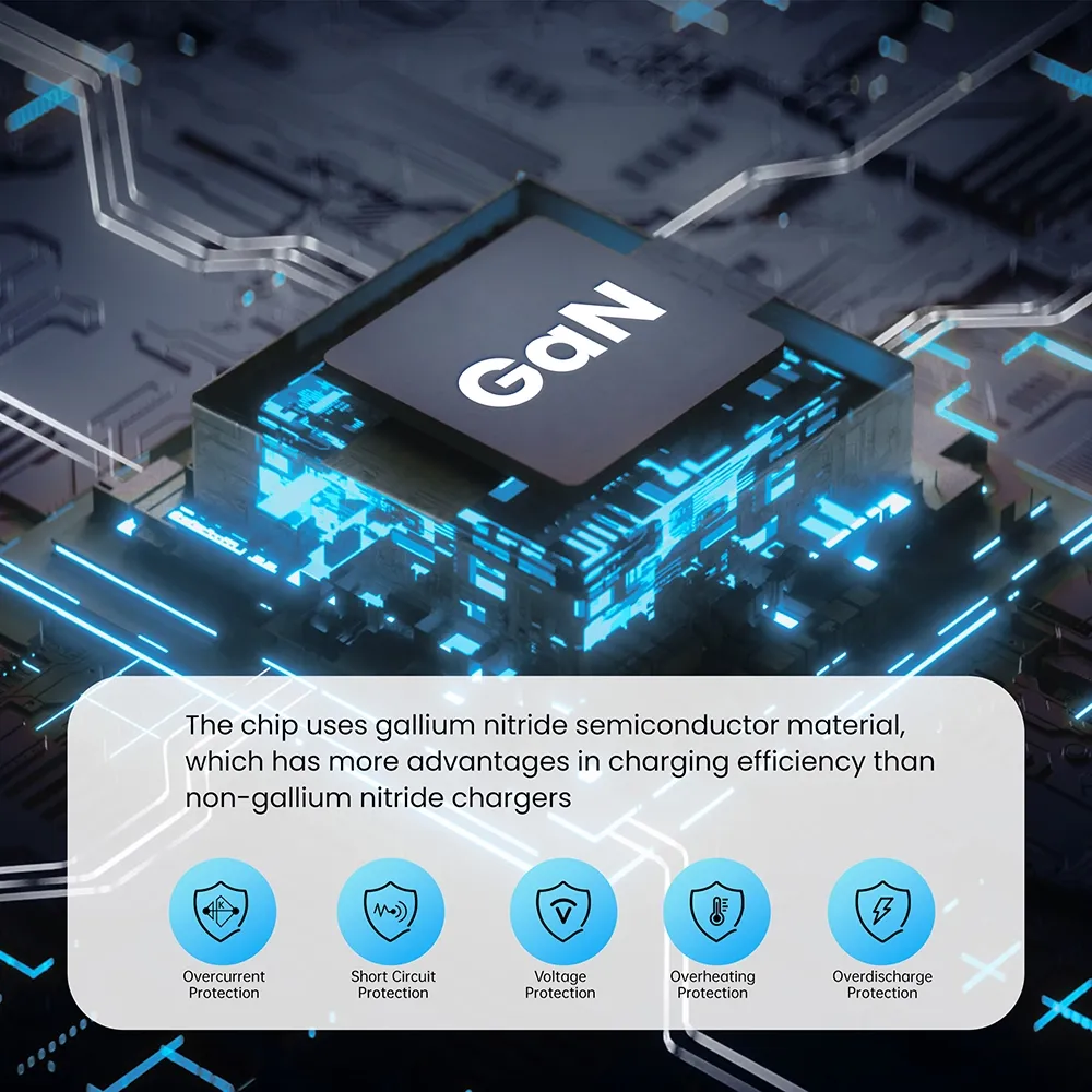 హై-స్పీడ్ ఛార్జింగ్: GAN 45W రిట్రాక్టబుల్ ఫాస్ట్ ఛార్జర్ మీ పరికరాలకు వేగవంతమైన ఛార్జింగ్ని నిర్ధారిస్తూ 45 వాట్ల శక్తివంతమైన అవుట్పుట్ను కలిగి ఉంది.