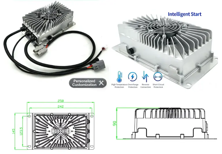 · మల్టీ-వోల్టేజ్ మోడల్లు: విభిన్న EV సిస్టమ్లకు సరిపోయేలా 24V (15A), 36V (10A), 48V (8A), 60V (6A), మరియు 72V (5A)లలో అందుబాటులో ఉన్నాయి.