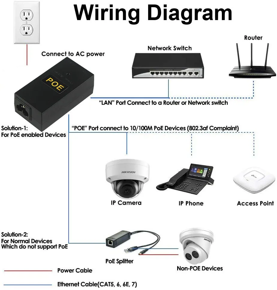 ప్రామాణికం: మీ పరికరానికి ఖచ్చితంగా IEEE 802.3af/సంప్రదింపుల వద్ద అవసరమైతే, ఈ ఇంజెక్టర్ సక్రియ హ్యాండ్షేక్ ప్రోటోకాల్లకు మద్దతు ఇస్తుందని నిర్ధారించుకోండి; లేకుంటే, నిష్క్రియ PoE ఇంజెక్టర్ అనుకూలత లేని పరికరాలను దెబ్బతీస్తుంది.