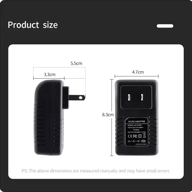 48V0.5A నాన్ స్టాండర్డ్ POE ఇంజెక్టర్ |