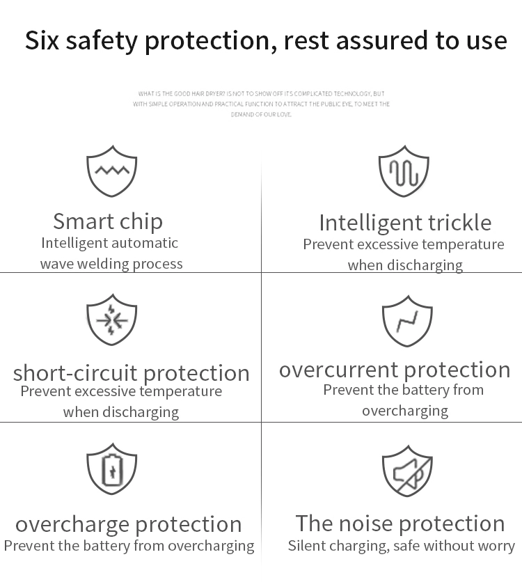 · అంతర్నిర్మిత స్మార్ట్ చిప్ వోల్టేజ్ మరియు ఉష్ణోగ్రతను పర్యవేక్షిస్తుంది