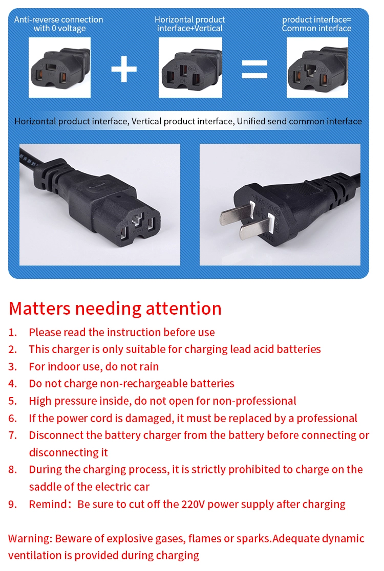 ఎలక్ట్రిక్ స్కూటర్లు, గోల్ఫ్ కార్ట్లు, సందర్శనా వాహనాలు, ఫోర్క్లిఫ్ట్లు లేదా శుభ్రపరిచే పరికరాల కోసం ఉపయోగించబడినా, ఈ ఛార్జర్ విస్తృత శ్రేణి అనువర్తనాల్లో ఆధారపడదగిన శక్తి మద్దతును అందిస్తుంది.