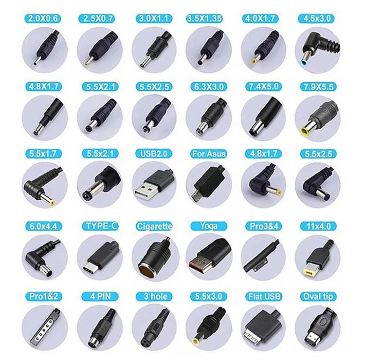 USB-C, 5.5x2.1mm, 5.5x2.5mm, 4.0x1.7mm, 3.5x1.35mm మరియు మరిన్ని అందుబాటులో ఉన్నాయి |