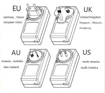 * యూనివర్సల్ ప్లగ్లు: US/EU/AU/UK/JP మరియు మరిన్ని