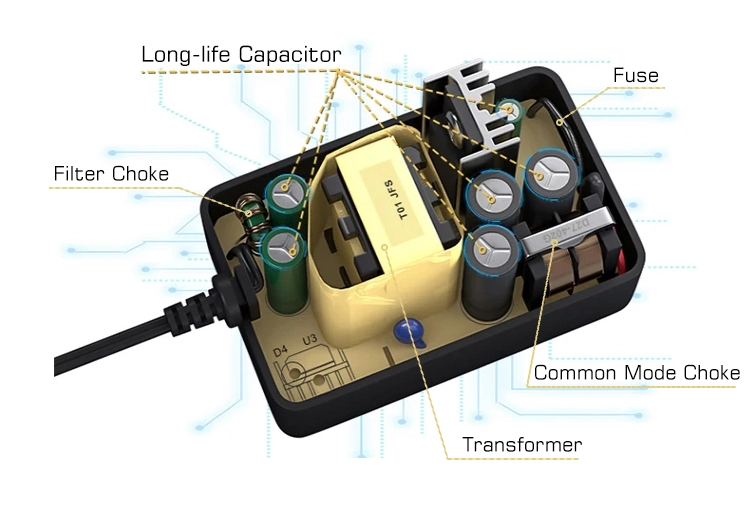 * 48W సిరీస్ కోసం మరిన్ని యూనిట్లు: 5V/9V/12V/15V/19V/24V/36V/48V అందుబాటులో ఉన్నాయి * భద్రత: OCP/OVP/OTP, SCP, ఆటోమేటిక్ ఓవర్లోడ్ కట్-ఆఫ్, ఓవర్ వోల్టేజ్ కట్-ఆఫ్, ఆటోమేటిక్ థర్మల్ కట్-ఆఫ్. * విస్తృత అనుకూలతలు: LED స్ట్రిప్ లైట్లు, 3D ప్రింటర్, హామ్ రేడియో ట్రాన్స్సీవర్, CCTV కెమెరాలు, కార్ సబ్ వూఫర్ amp, ఆడియో యాంప్లిఫైయర్, వైర్లెస్ రూటర్, ADSL క్యాట్స్, హ్యూమిడిఫైయర్, HUB, కీబోర్డ్, BT స్పీకర్, మానిటర్, వెబ్క్యామ్, DVR/ వీడియో పవర్ సప్లై, DVR/ వీడియో పవర్ సప్లై