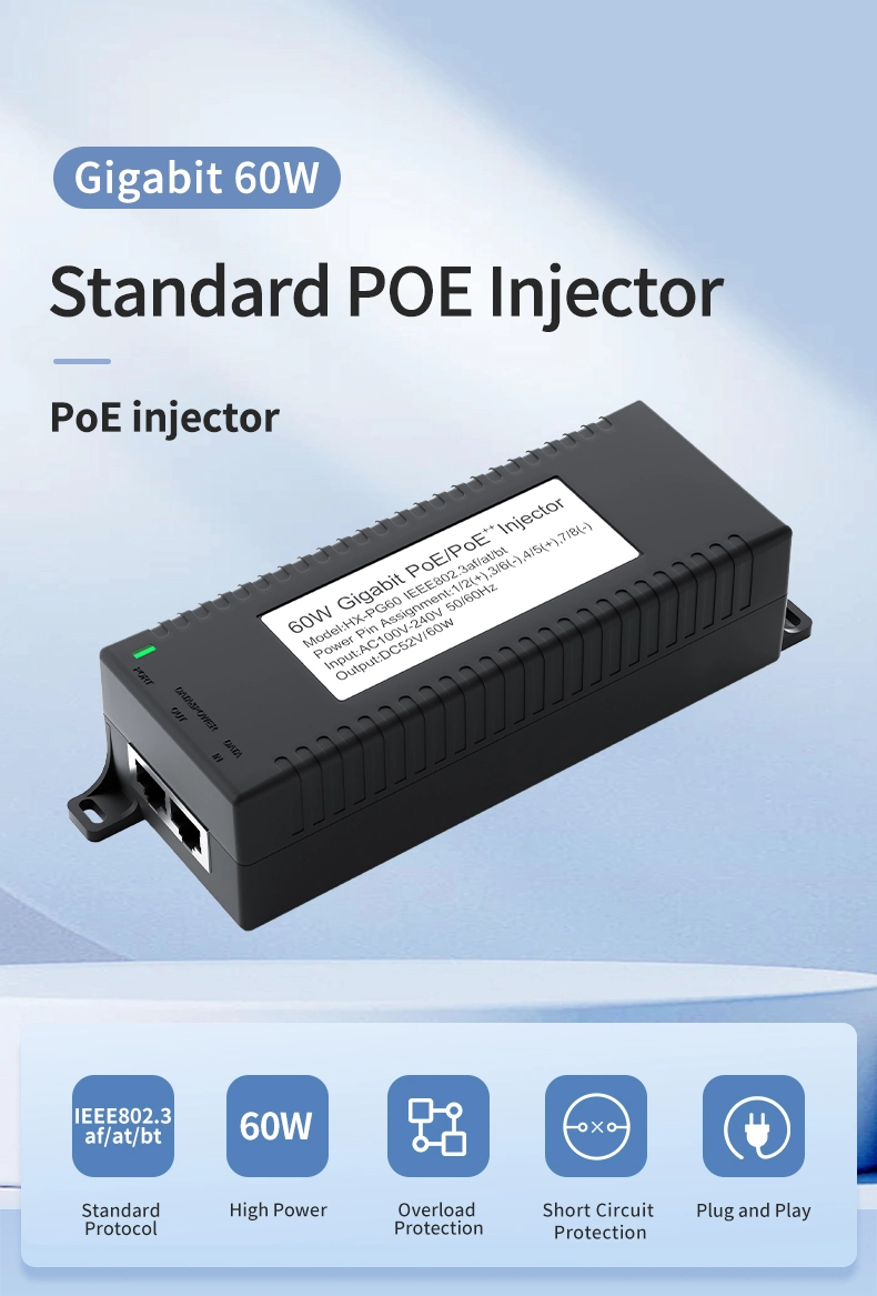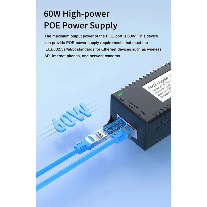 గిగాబిట్ 60W స్టాండర్డ్ POE ఇంజెక్టర్ |