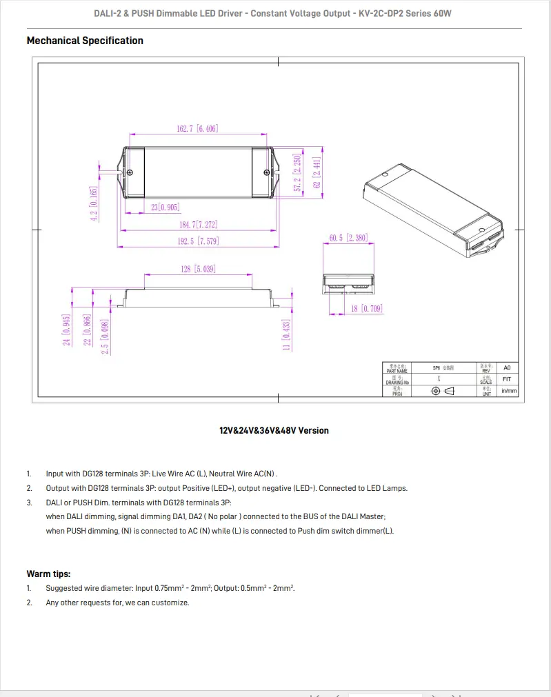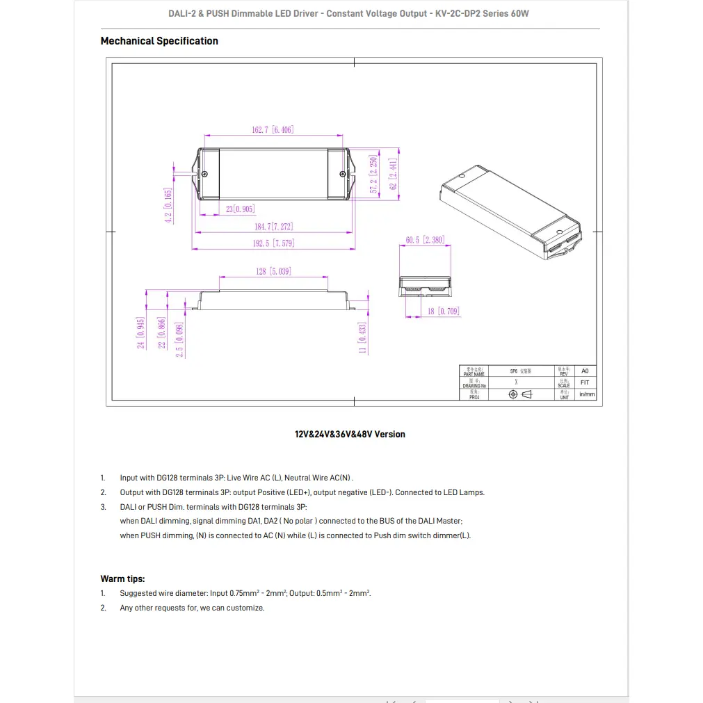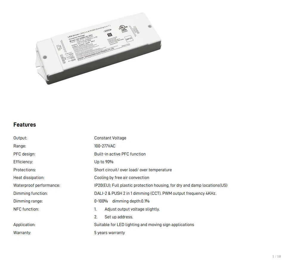 డిమ్మింగ్ ఫంక్షన్: DALI-2 & పుష్ 2 ఇన్ 1 డిమ్మింగ్ (CCT). PWM అవుట్పుట్ ఫ్రీక్వెన్సీ 4KHz.