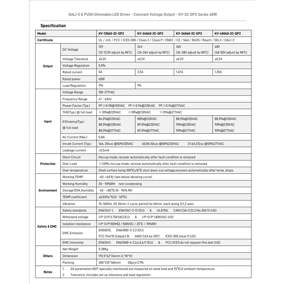 UL / cUL / FCC / ICES-005 / క్లాస్ 2 / క్లాస్ P / ENEC / CE / SAA / RoHS / రీచ్ / SELV / DALI-2 |