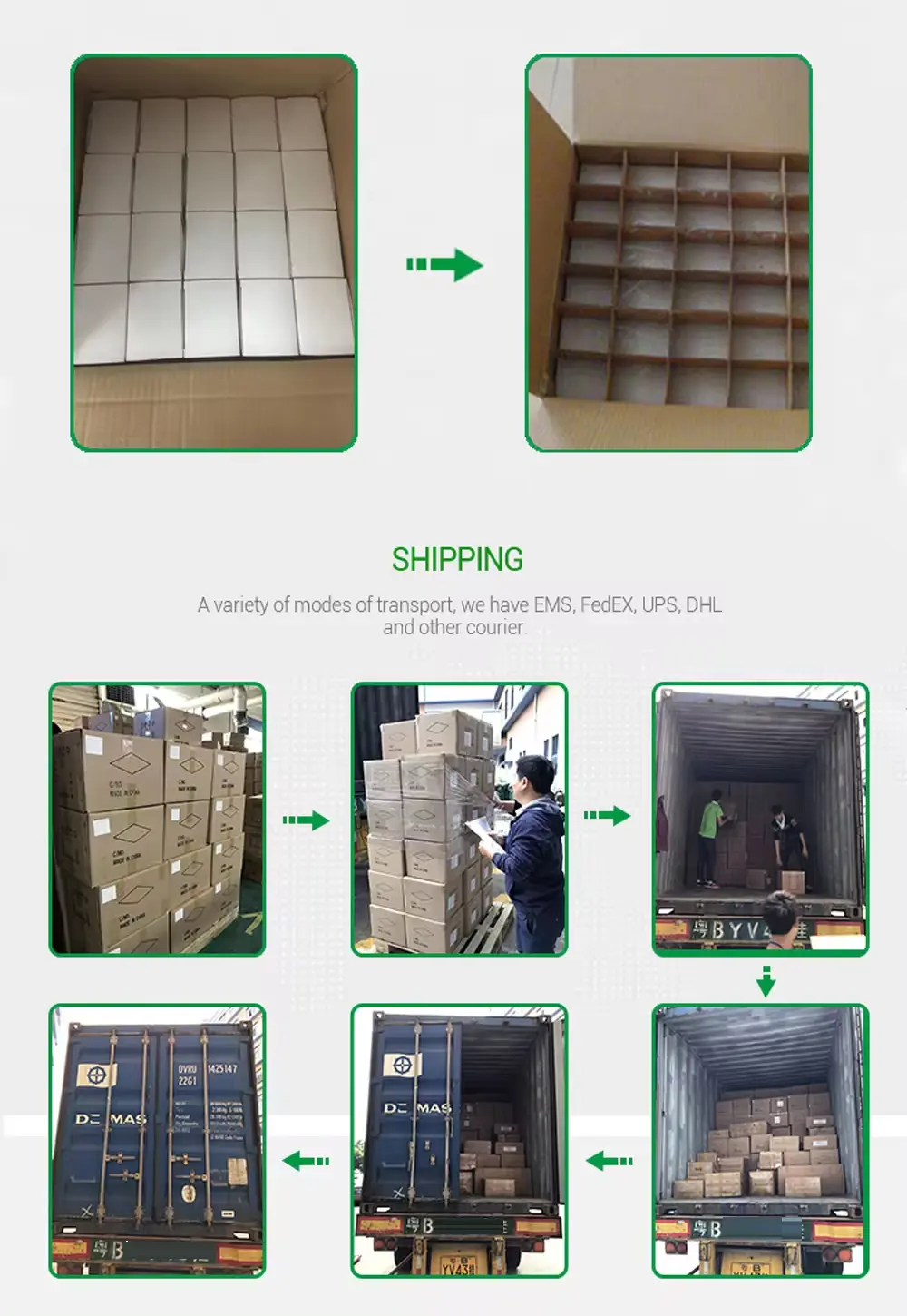 A7: ఎక్స్ప్రెస్ కొరియర్, ఎయిర్ఫ్రైట్, ఓషన్ ఫ్రైట్.