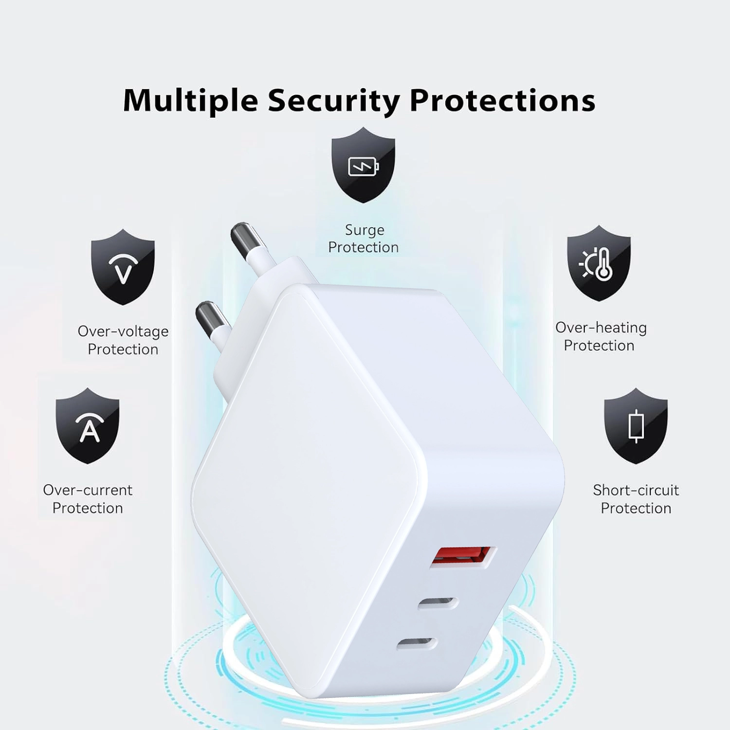 అధునాతన భద్రతా రక్షణ-అంతర్నిర్మిత ఓవర్వోల్టేజ్, ఓవర్కరెంట్, ఓవర్హీట్ మరియు షార్ట్-సర్క్యూట్ రక్షణ మీ అన్ని పరికరాలకు సురక్షితమైన మరియు విశ్వసనీయమైన ఛార్జింగ్ని నిర్ధారిస్తుంది.