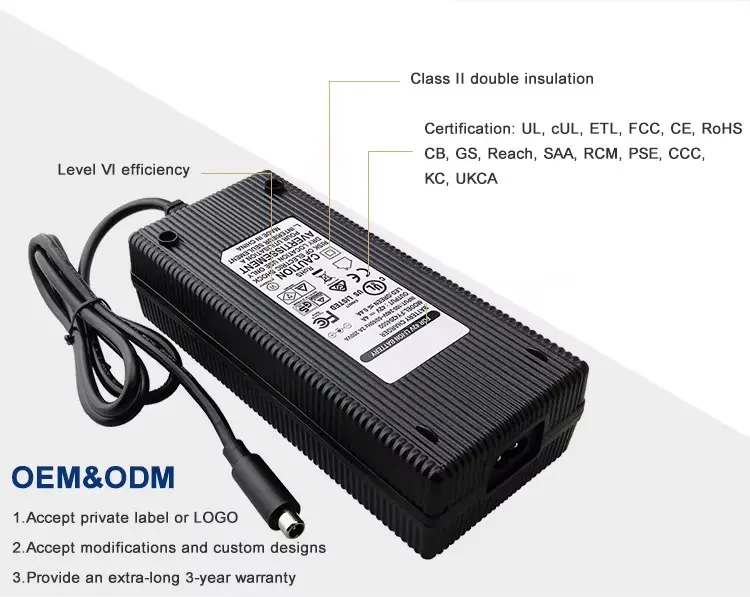 UL, ETL, CUL, GS, CE, BS, SAA ,KC, PSE, CB, FCC, EMC, RoHS, రీచ్ ప్రమాణాలకు ధృవీకరించబడిన ఈ ఛార్జర్ ఎలక్ట్రిక్ మొబిలిటీ అప్లికేషన్లను డిమాండ్ చేయడానికి సమర్థవంతమైన, వేగవంతమైన మరియు సురక్షితమైన శక్తిని అందిస్తుంది.