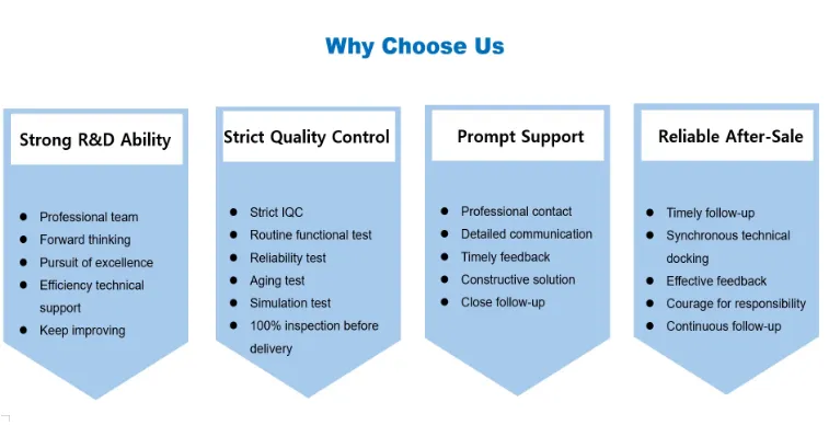 మా ఉత్పత్తులు అంతర్జాతీయ ప్రమాణాలు మరియు ఉన్నత పరిశ్రమ ప్రమాణాలను డిజైన్ నుండి ప్రూఫింగ్ నుండి భారీ ఉత్పత్తి వరకు ఖచ్చితంగా సూచిస్తాయి మరియు గ్లోబల్ మార్కెట్లో అనుకూలత మరియు సమ్మతిని నిర్ధారించడానికి CE, FCC, RoHS,ETL మొదలైన అంతర్జాతీయ ప్రమాణాలకు అనుగుణంగా ఉంటాయి.