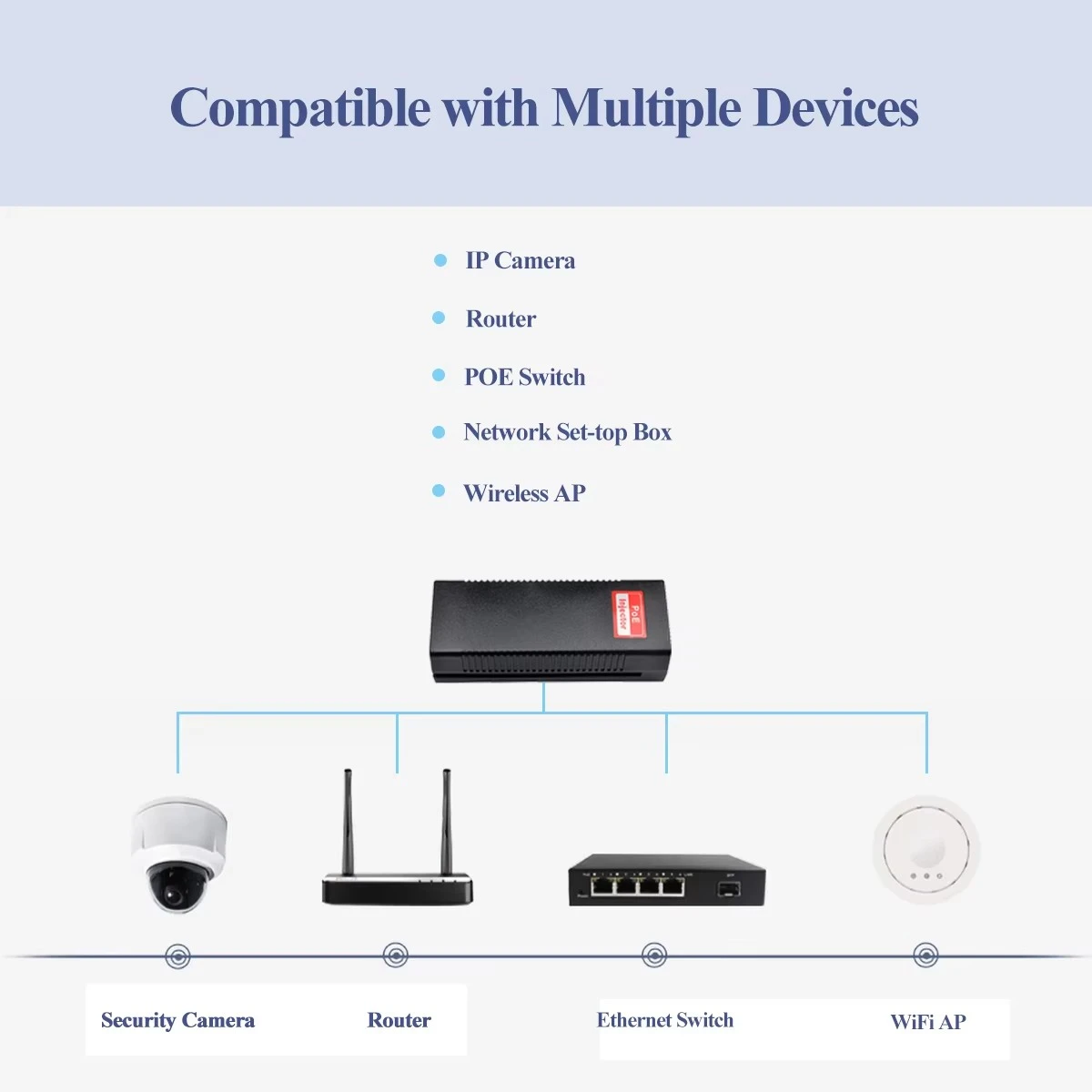 వైర్లెస్ యాక్సెస్ పాయింట్లు, PTZ IP కెమెరాలు మరియు వీడియోఫోన్లు వంటి పరికరాలకు రిమోట్ పవర్ను సరఫరా చేస్తుంది