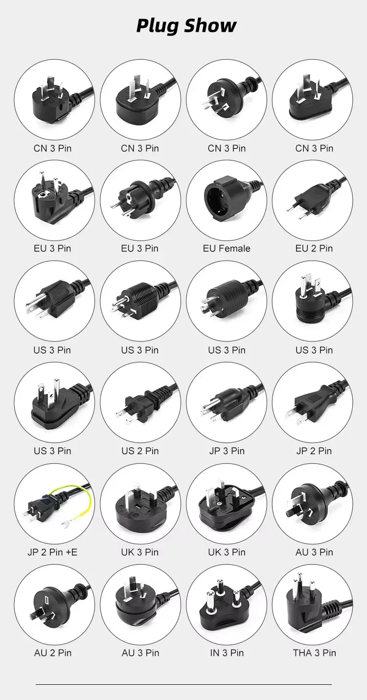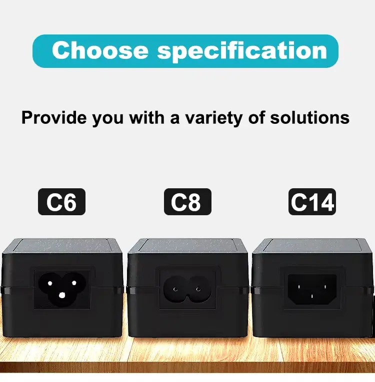 విశ్వసనీయమైన మరియు సమర్థవంతమైన శక్తి మార్పిడి కోసం రూపొందించబడిన ఈ 65W డెస్క్టాప్ అడాప్టర్, ప్రామాణిక వాల్ అవుట్లెట్ల నుండి ఆల్టర్నేటింగ్ కరెంట్ (AC)ని స్థిరమైన డైరెక్ట్ కరెంట్ (DC)గా మారుస్తుంది, ఇది విస్తృత శ్రేణి ఎలక్ట్రానిక్ పరికరాల విద్యుత్ అవసరాలను తీరుస్తుంది.