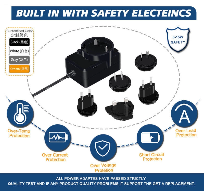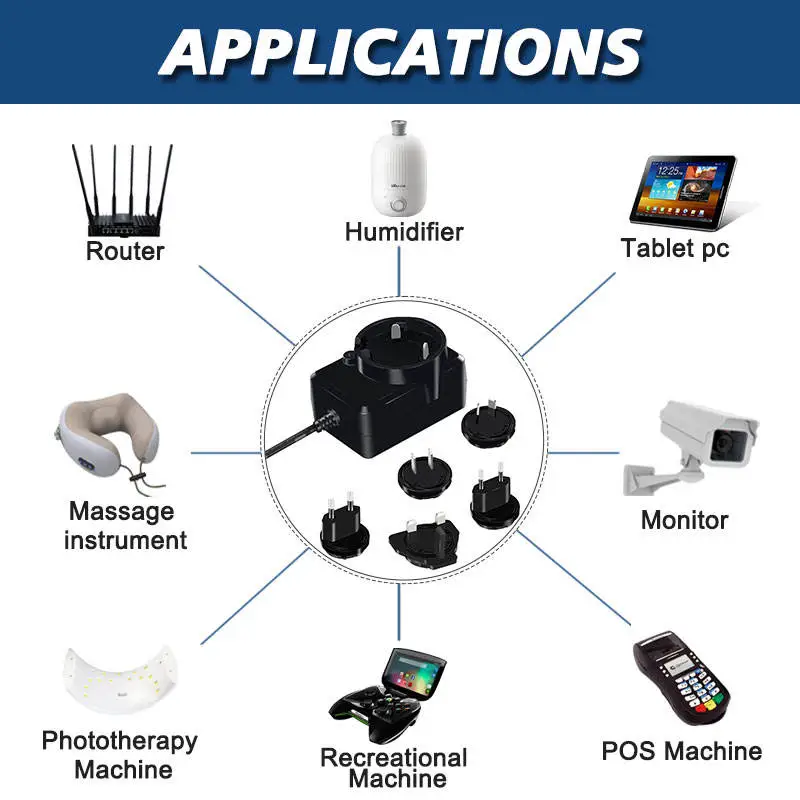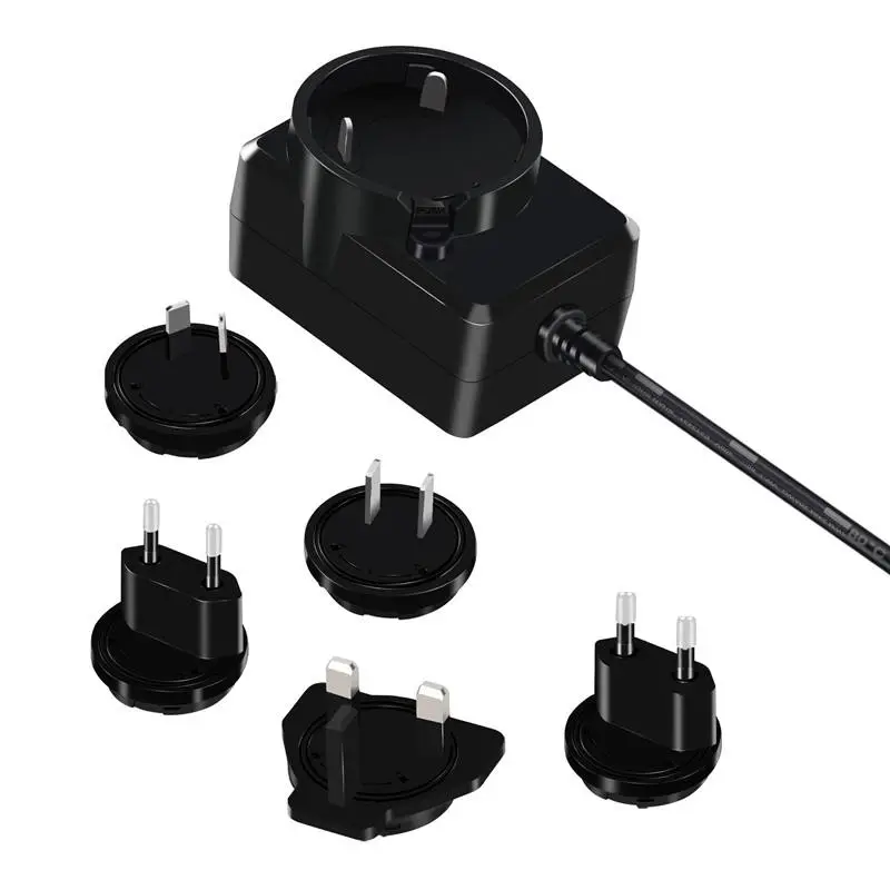 స్టార్వెల్ హై క్వాలిటీ ఇంటర్ఛేంజబుల్ ప్లగ్ పవర్ సప్లై అడాప్టర్ అనేది వాల్ అవుట్లెట్ నుండి AC (ఆల్టర్నేటింగ్ కరెంట్) మెయిన్స్ విద్యుత్ను స్థిరమైన, తక్కువ-వోల్టేజ్ DC (డైరెక్ట్ కరెంట్) పవర్గా మార్చడానికి రూపొందించబడిన బహుముఖ మరియు పోర్టబుల్ పరికరం. దీని నిర్వచించే లక్షణం వేరు చేయగలిగిన మరియు మార్చుకోగలిగిన ప్లగ్ల సమితి (తరచుగా "AC ప్లగ్లు" లేదా "ఇన్పుట్ బ్లేడ్లు" అని పిలుస్తారు) ఇది వివిధ అంతర్జాతీయ సాకెట్ ప్రమాణాలకు అనుగుణంగా ఉంటుంది.