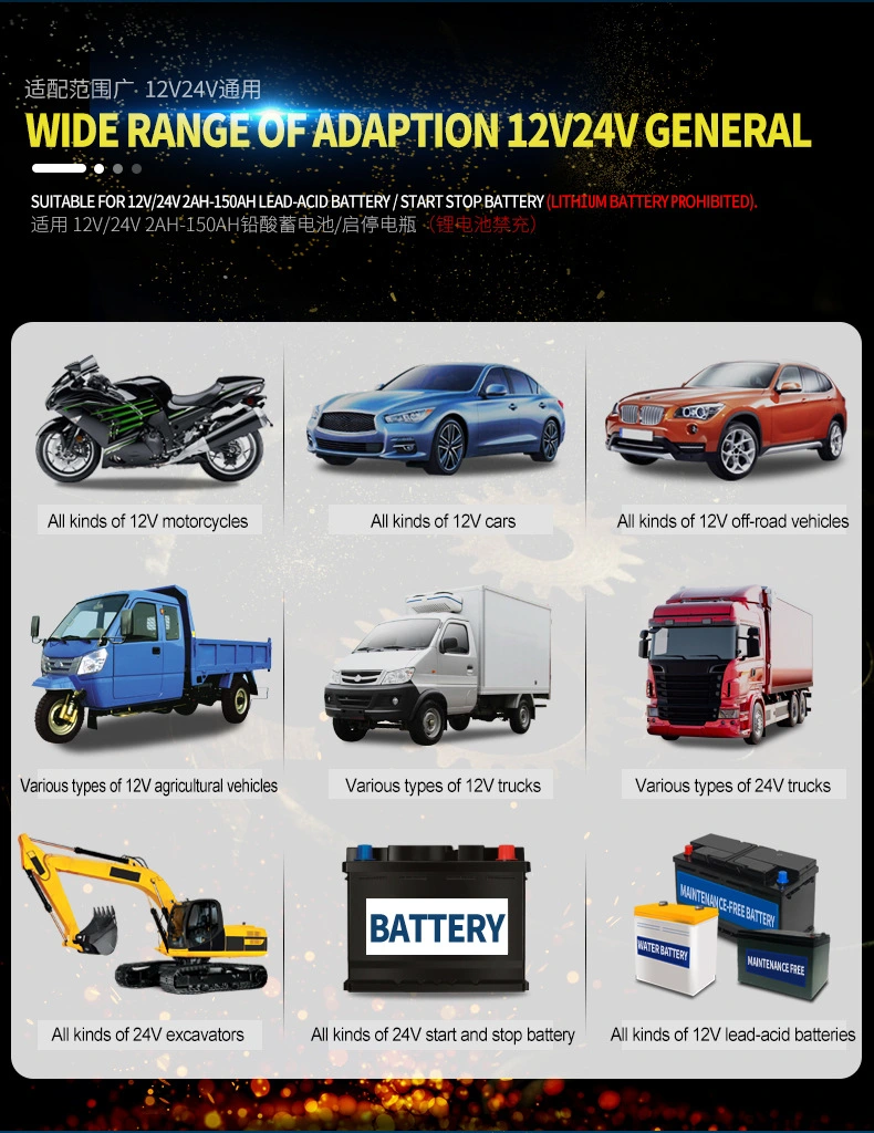 J30 ఇంటెలిజెంట్ బ్యాటరీ ఛార్జర్ ప్రత్యేకంగా ఆధునిక స్టార్ట్-స్టాప్ వాహనాలు మరియు సాంప్రదాయ లెడ్-యాసిడ్ బ్యాటరీల కోసం రూపొందించబడింది. ఇది AGM, EFB, GEL మరియు సాధారణ ఫ్లడ్డ్ లెడ్-యాసిడ్ బ్యాటరీలతో పూర్తిగా అనుకూలంగా ఉంటుంది మరియు 12V (8A) మరియు 24V (4A) సిస్టమ్లకు అనుకూలంగా ఉంటుంది. కార్లు, మోటార్ సైకిళ్ళు, ట్రక్కులు మరియు పడవలు వంటి వివిధ దృశ్యాలలో దీనిని సురక్షితంగా ఉపయోగించవచ్చు.