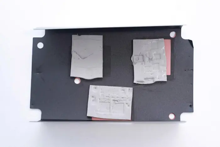 మూడు థర్మల్ ప్యాడ్లు వరుసగా PFC స్విచ్, LLC స్విచ్ మరియు సింక్రోనస్ రెక్టిఫైయర్లకు అనుగుణంగా ఉంటాయి.