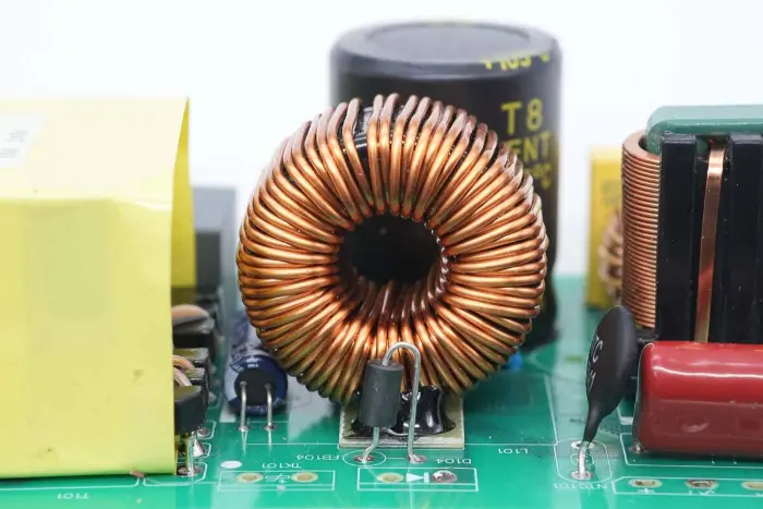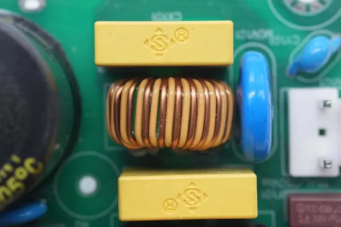 అవుట్పుట్ మాగ్నెటిక్ రింగ్ ఫిల్టర్ ఇండక్టర్ యొక్క క్లోజ్-అప్.