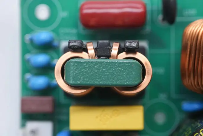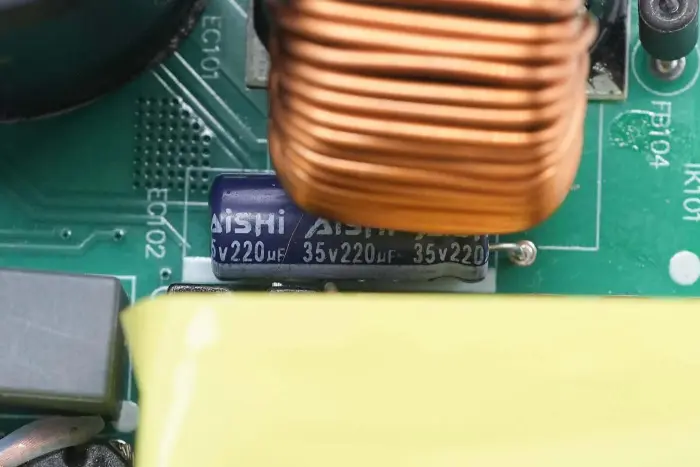 PFC బూస్ట్ ఇండక్టర్ మాగ్నెటిక్ రింగ్తో గాయమైంది మరియు ఇన్సులేషన్ కోసం దిగువన బేకలైట్ షీట్ అందించబడుతుంది.