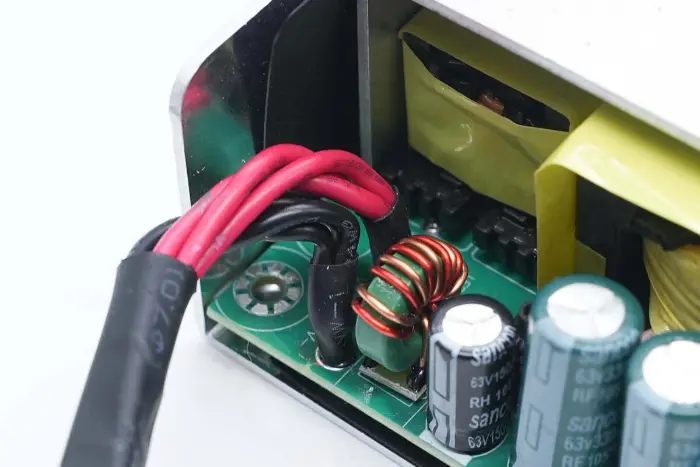 అవుట్పుట్ వైర్లు టంకం ద్వారా అనుసంధానించబడి ఉంటాయి, ఇన్సులేషన్ కోసం టంకము కీళ్లపై స్లీవ్ చేయబడిన హీట్-ష్రింక్ గొట్టాలు ఉంటాయి.