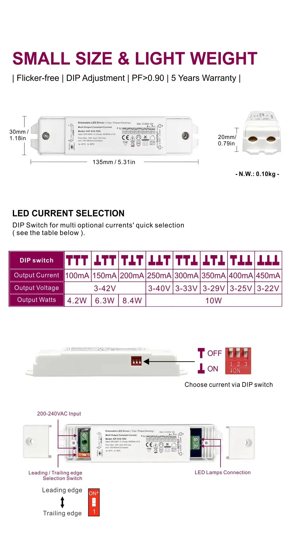 బలమైన శక్తి & అధిక సామర్థ్యం: అధిక పవర్ ఫ్యాక్టర్ కరెక్షన్ (PF>0.9) మరియు తక్కువ టోటల్ హార్మోనిక్ డిస్టార్షన్ (THD)తో, మా డ్రైవర్ గ్లోబల్ ఎనర్జీ ఎఫిషియెన్సీ అవసరాలను తీరుస్తుంది, మీ ఎలక్ట్రికల్ సిస్టమ్పై లోడ్ తగ్గిస్తుంది మరియు కూల్, నమ్మదగిన పనితీరుతో పనిచేస్తుంది.