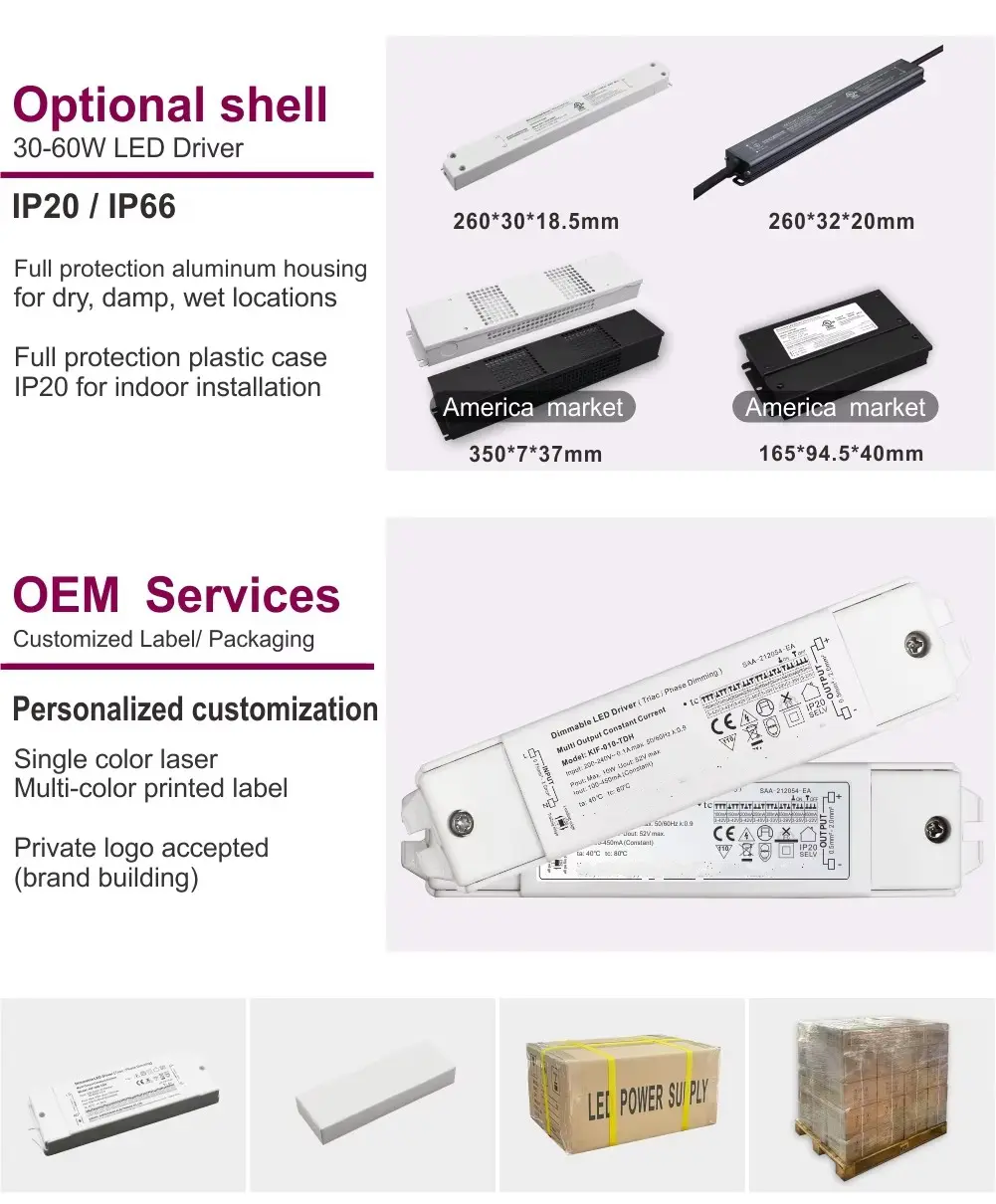స్టార్వెల్ ట్రయాక్ స్థిరమైన కరెంట్ డిమ్మబుల్ లెడ్ డ్రైవర్ 10W నుండి 60W