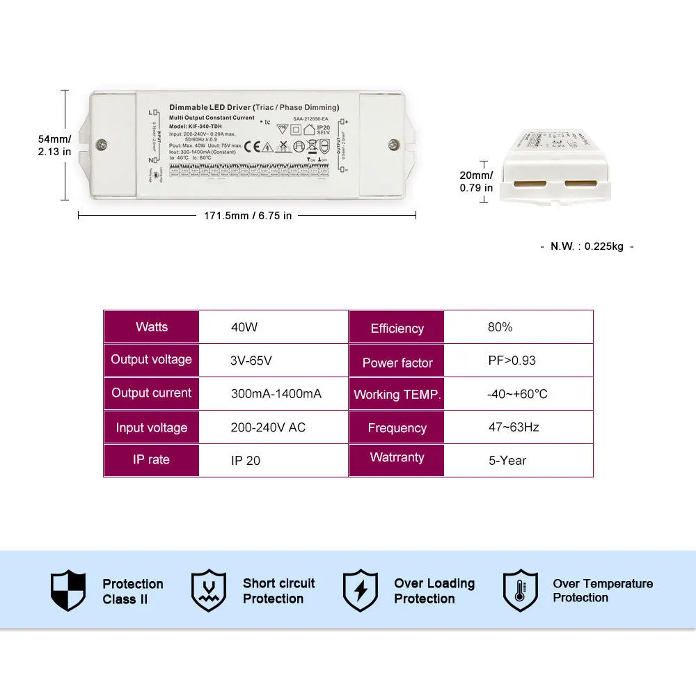 40W స్థిరమైన కరెంట్ ట్రయాక్ డిమ్మబుల్ LED డ్రైవర్