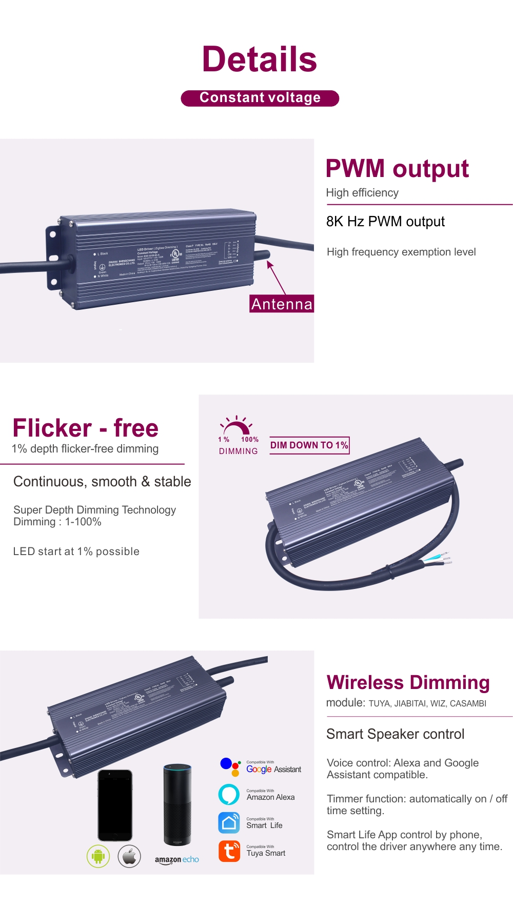 డిమాండ్ ఉన్న వాతావరణాల కోసం రూపొందించబడిన, ఈ Tuya Zigbee స్థిరమైన వోల్టేజ్ 24V లీడ్ డ్రైవర్ మన్నికతో పనితీరును మిళితం చేస్తుంది.