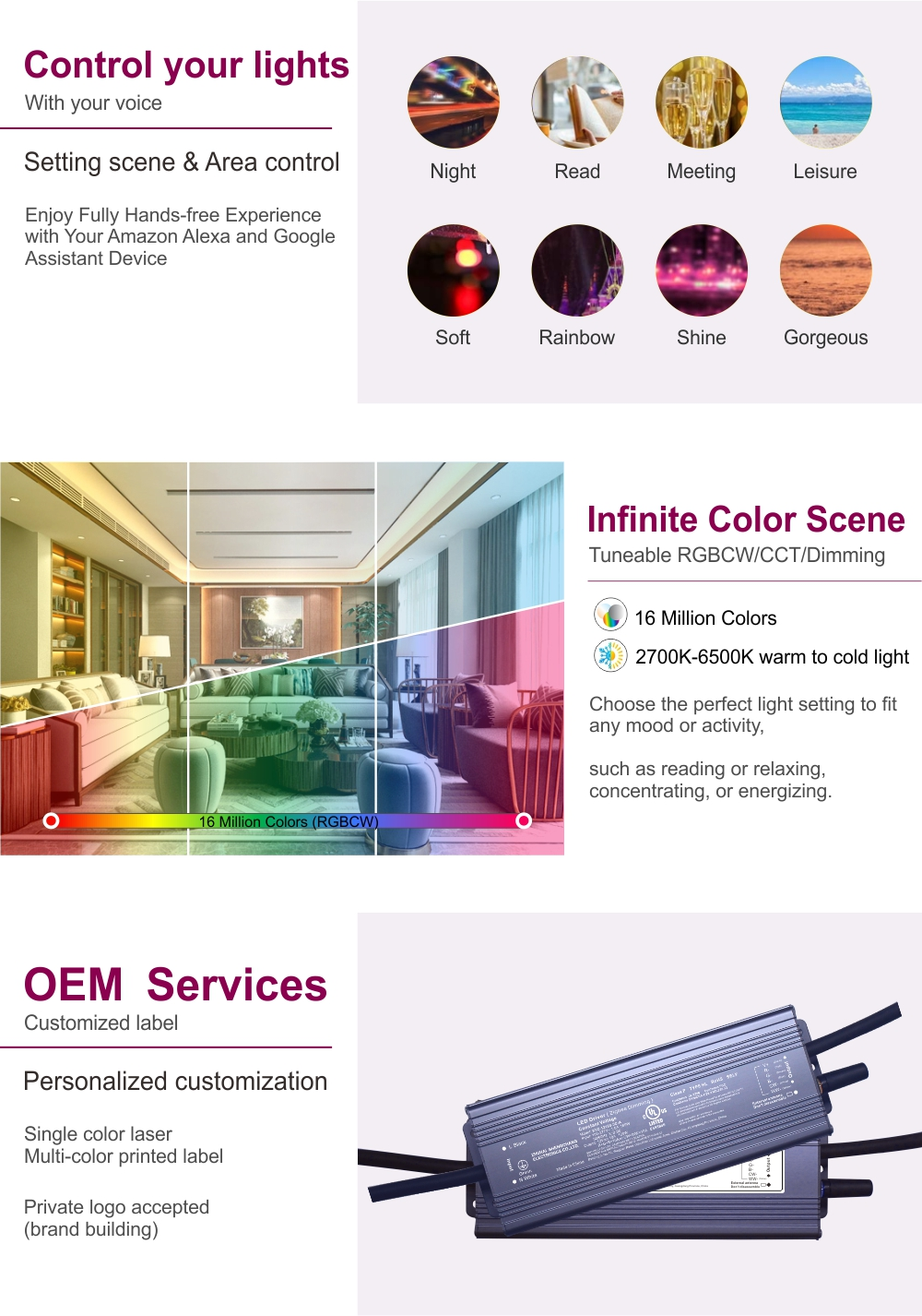 ఈ నాణ్యమైన స్మార్ట్ డ్రైవర్ విస్తృత శ్రేణి క్లాస్సి లైటింగ్ అప్లికేషన్లకు సరైనది: