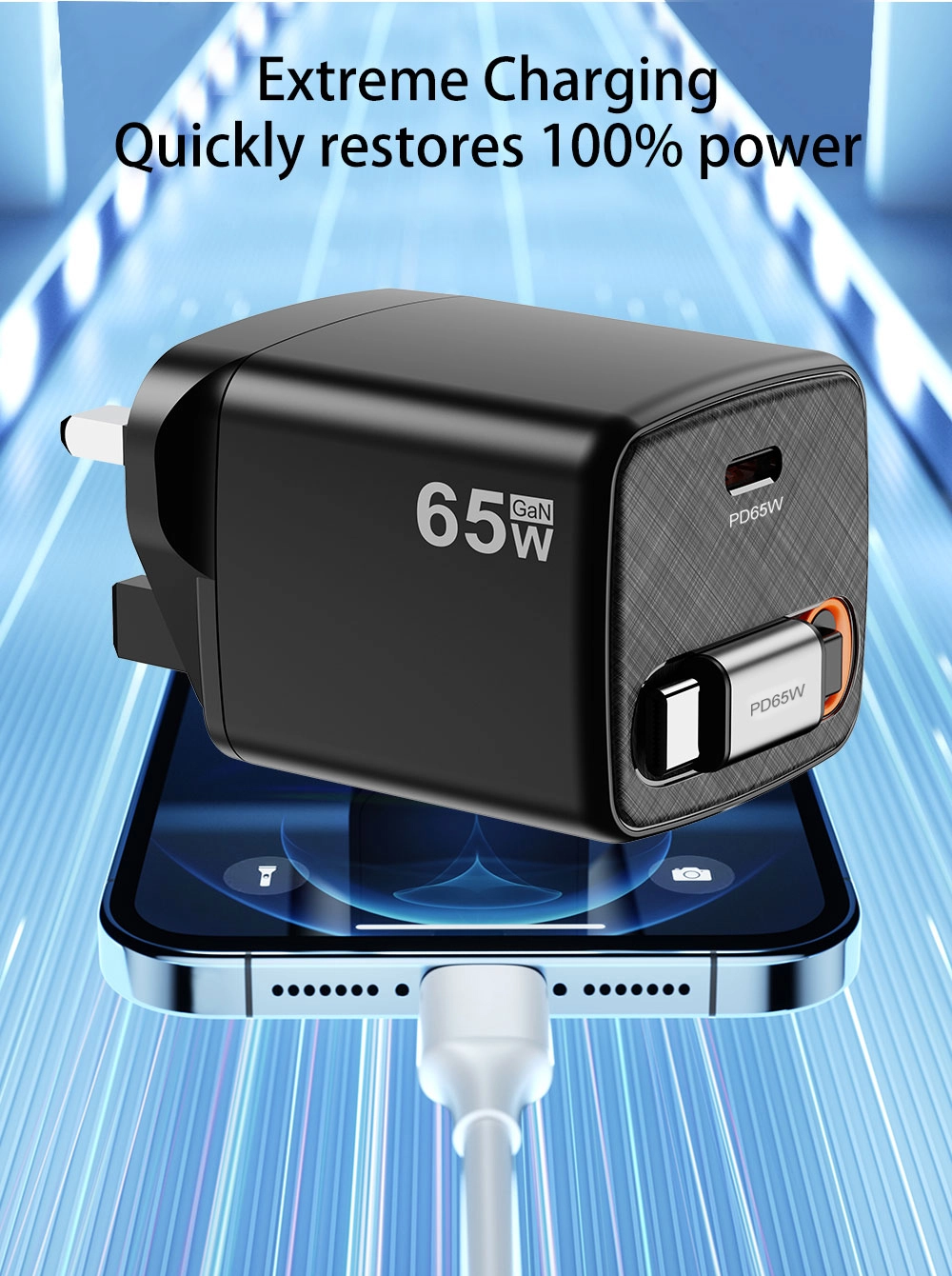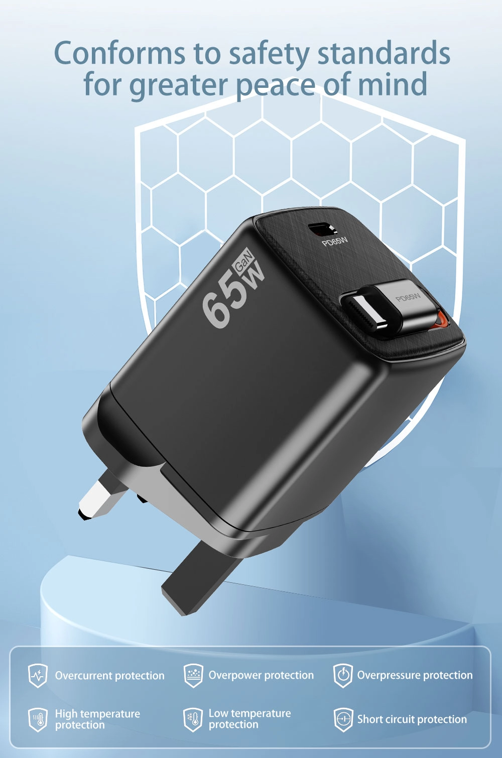 UK ప్లగ్ రకం 65w త్వరిత ఛార్జర్ స్పెసిఫికేషన్: