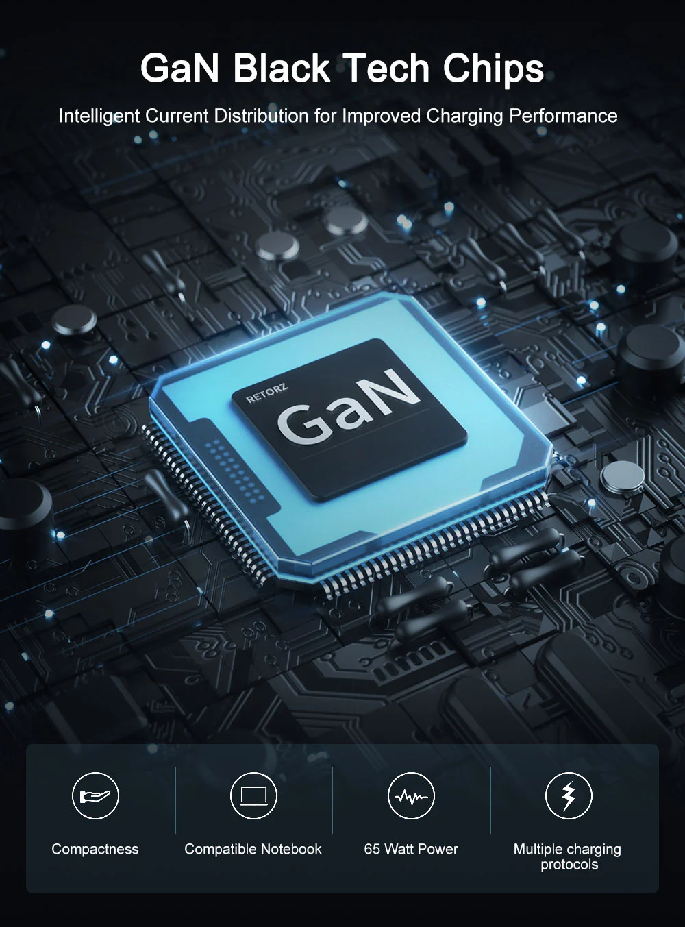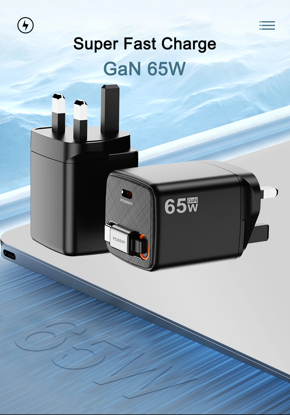 - ఫాస్ట్ ఛార్జింగ్: 65W అవుట్పుట్ ఛార్జింగ్ సమయాన్ని తగ్గిస్తుంది, మీ పరికరాలను త్వరగా పవర్ అప్ చేస్తుంది.