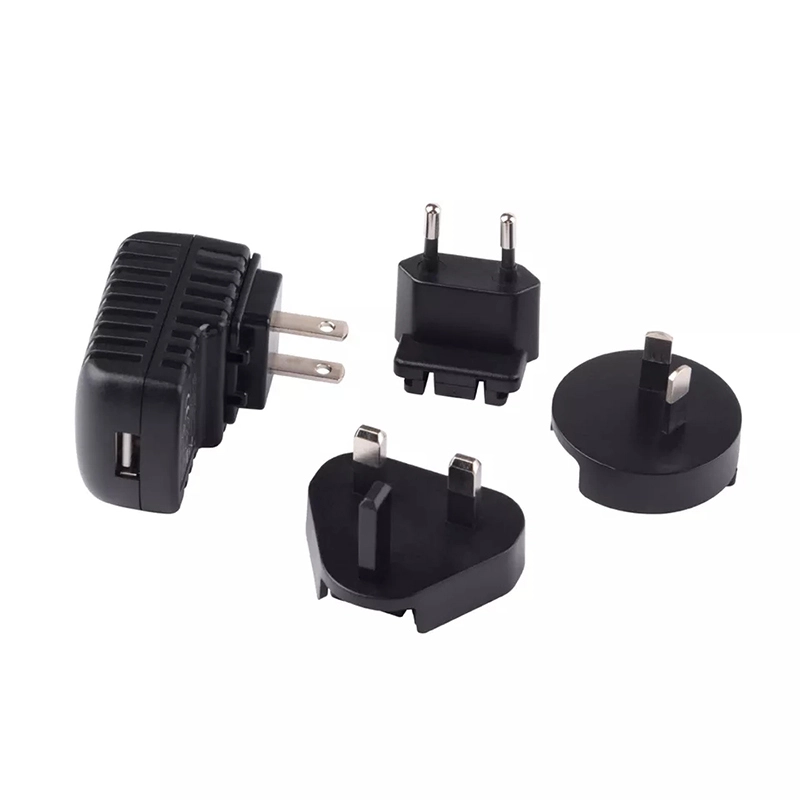 మార్చుకోగలిగిన AC ప్లగ్తో 5V 2A యూనివర్సల్ USB A పోర్ట్ ఛార్జర్ పవర్ అడాప్టర్ |